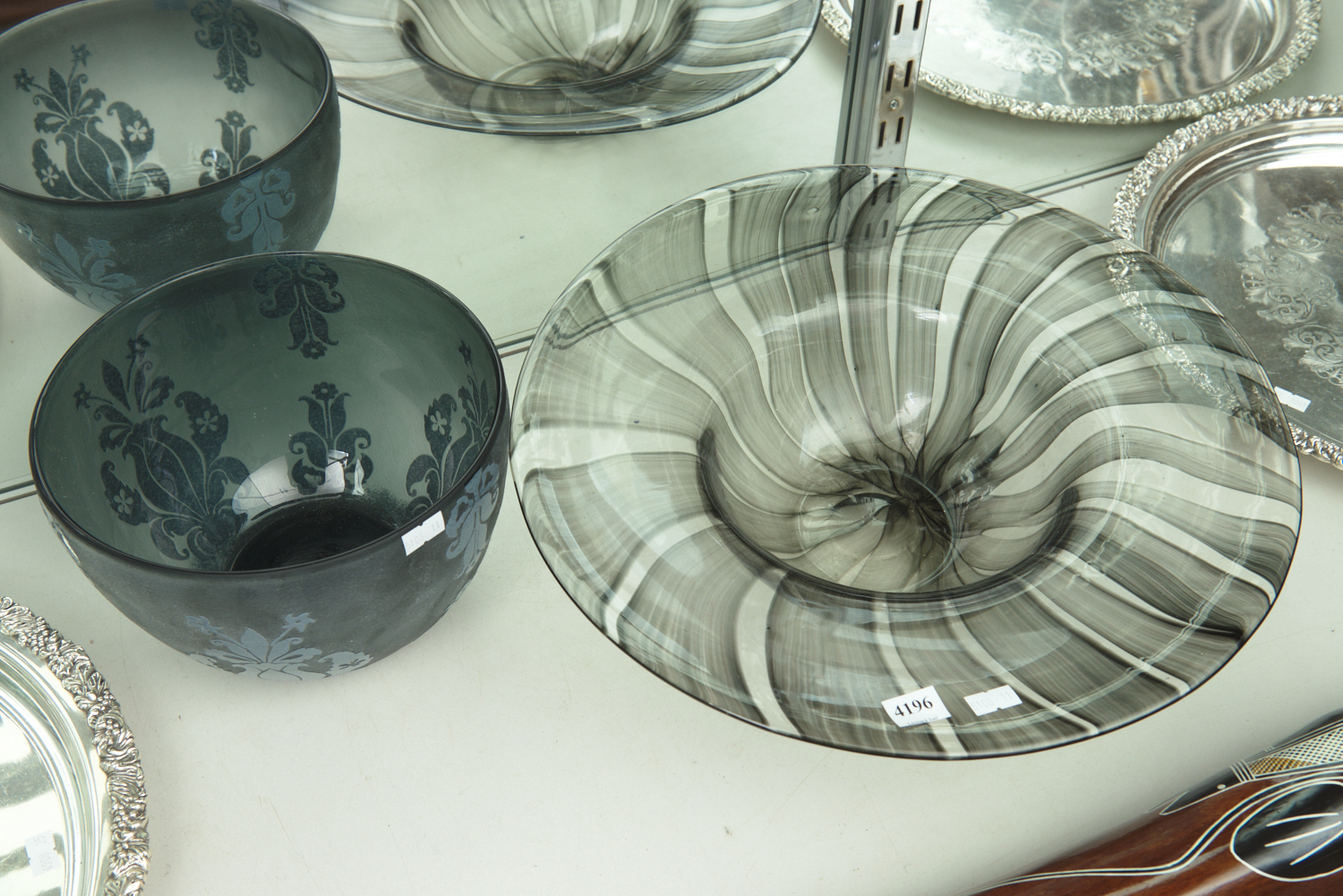 TWO ART GLASS BOWLS, 39.5 CM DIAMETER, LEONARD JOEL DELIVERY SIZE: SMALL