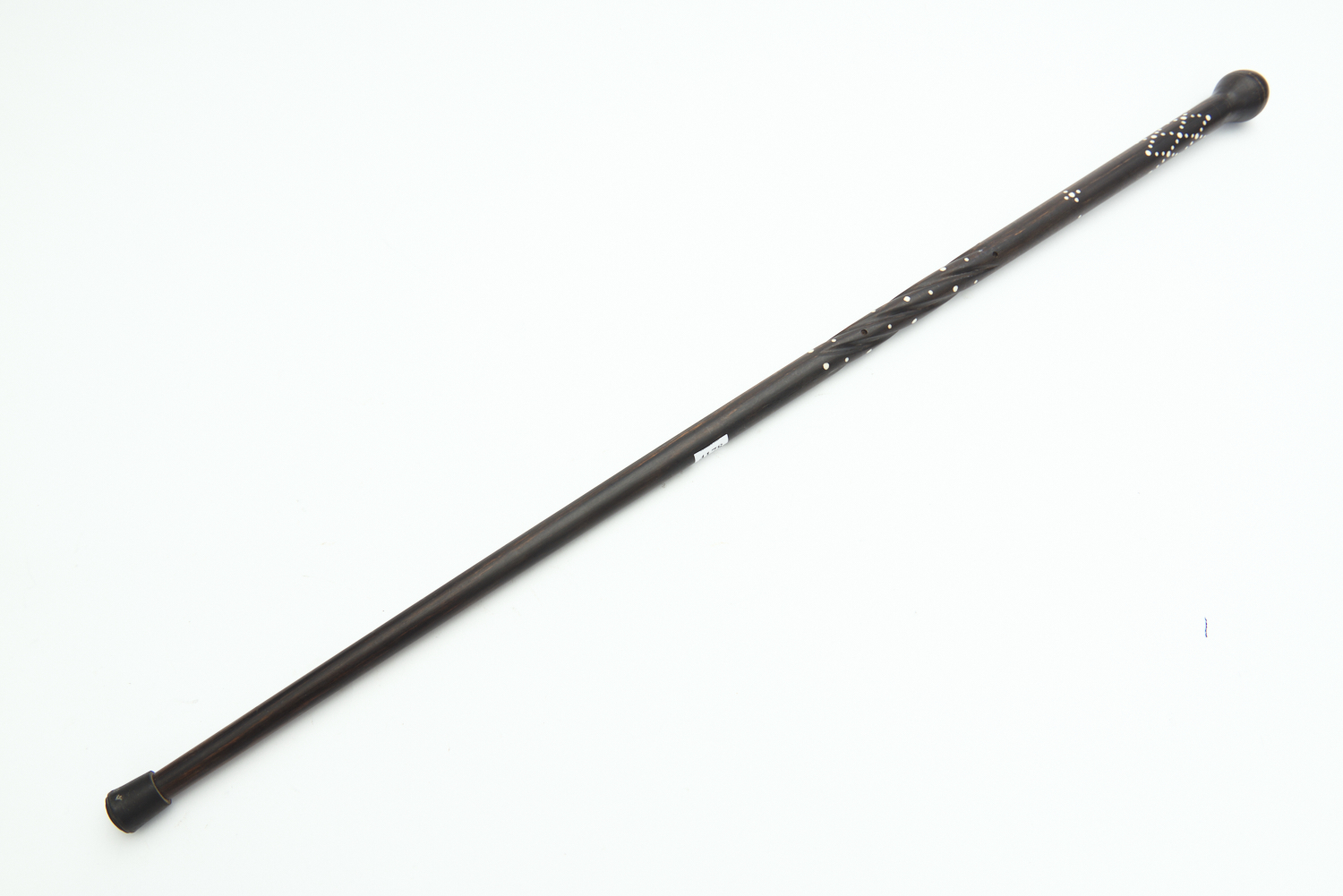 A BONE INLAID EBONY WALKING STICK, L. 91CM, LEONARD JOEL LOCAL DELIVERY SIZE: SMALL