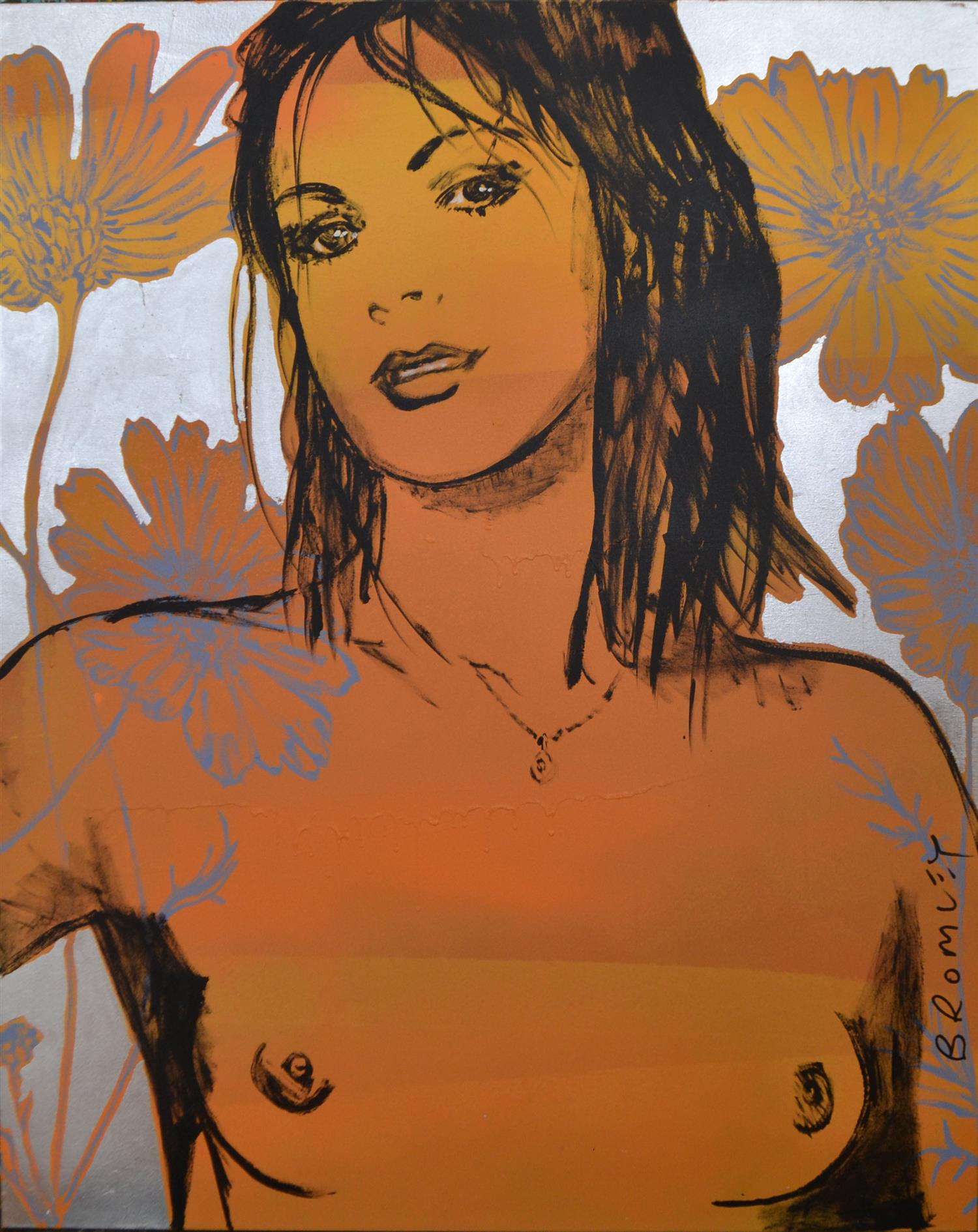 DAVID BROMLEY, BELINDA IN ORANGE, SILVER LEAF AND ACRYLIC ON CANVAS, 152 X 122CM, NO ADDITIONAL FRAMING, CONDITION: WORK IS IN VERY GOOD CONDITION WITH SOME LIGHT IMPERFECTIONS TO THE SILVER LEAF ON THE CORNERS. LEONARD JOEL DELIVERY SIZE: LARGE