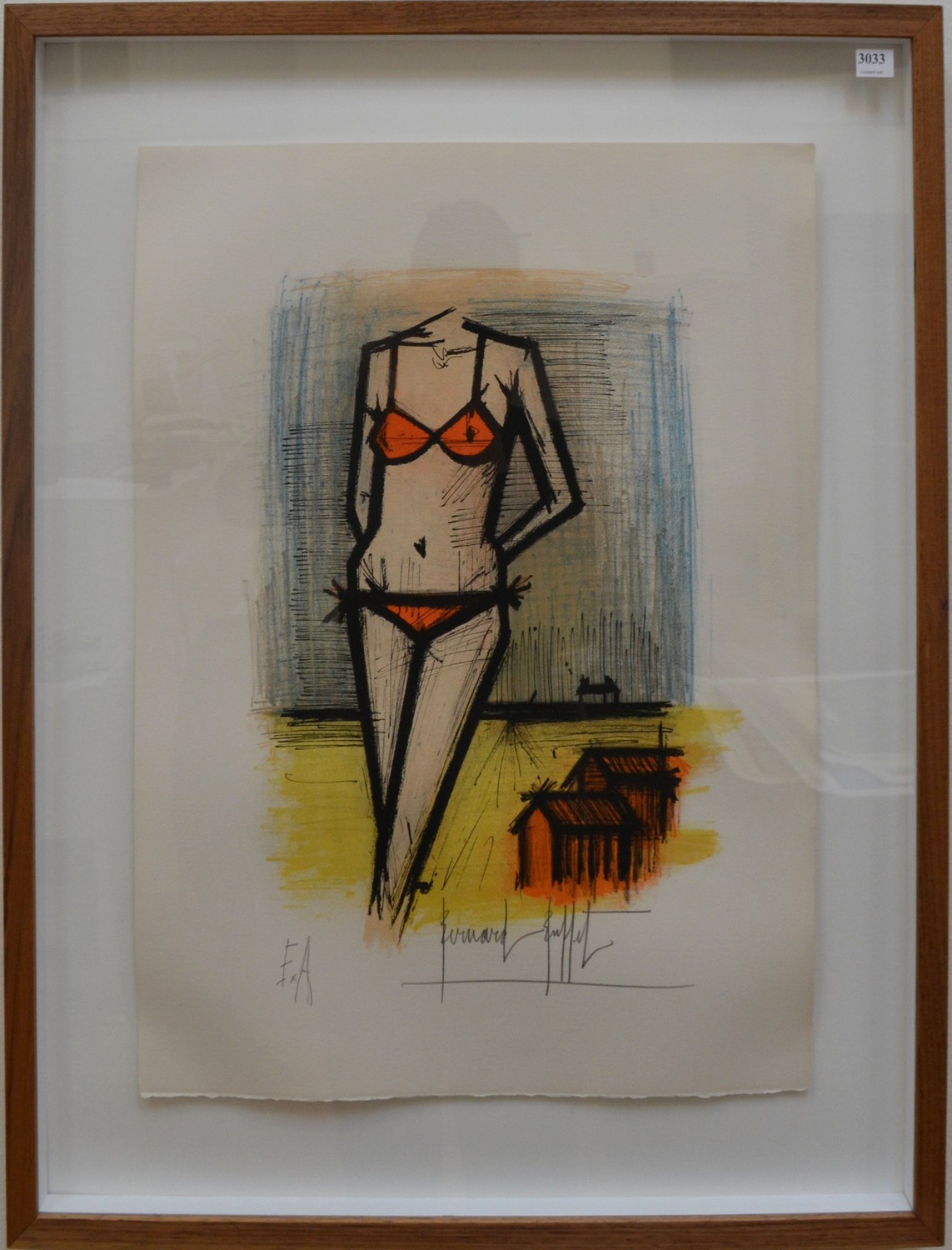 BERNARD BUFFET, NUDE IN SWIMSUIT, LITHOGRAPH EA, SHEET SIZE: 57 X 44CM, FRAME SIZE: 76 X 62CM, VERY GOOD CONDITION AND WELL FRAMED. LEONARD JOEL DELIVERY SIZE: MEDIUM