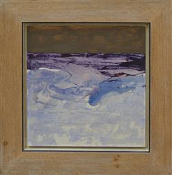 LAWRENCE DAWS, SEASALTER CROSS, OIL ON MAISONITE, SIGNED LOWER RIGHT, 41 X 41CM, FRAME SIZE: 61 X 60CM, CONDITION: GOOD CONDITION WITH SLIGHT LOSSES TO PIGMENT AROUND EDGES TO BOARD, THERE ARE AREAS OF SURFACE CRACKING SEEN IN THE RIGHT HAND SIDE, IN THE PURPLE PIGMENT,