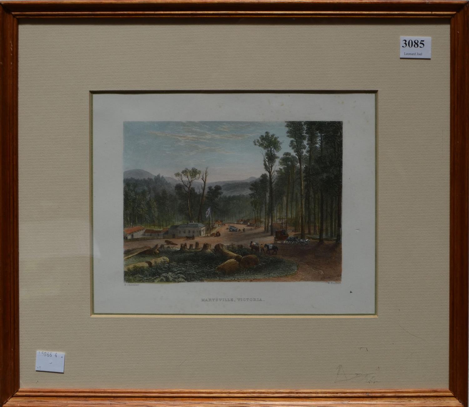 NICHOLAS CHEVALIER, MARYSVILLE VICTORIA, ENGRAVING, IMAGE SIZE: 12.5 X 17CM, FRAME SIZE: 36 X 41CM, CONDITION: FOXING AND DISCOLOURATION THROUGHOUT, LEONARD JOEL DELIVERY SIZE: SMALL