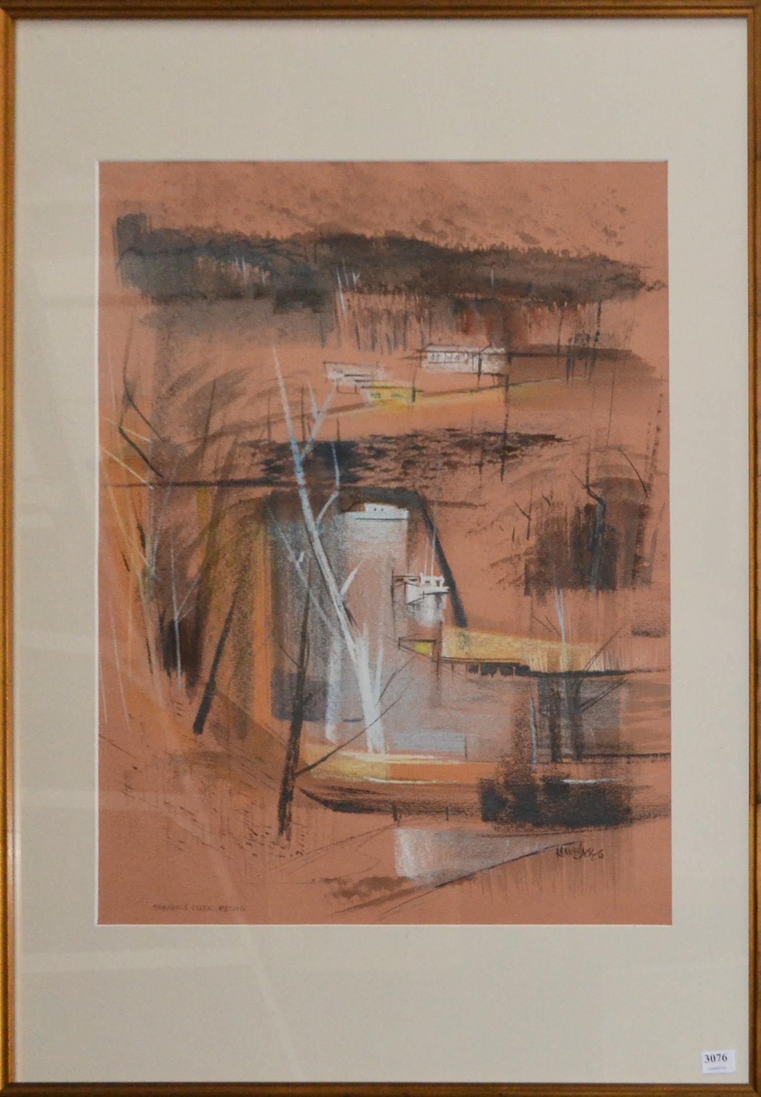 pastel and ink on coloured paper