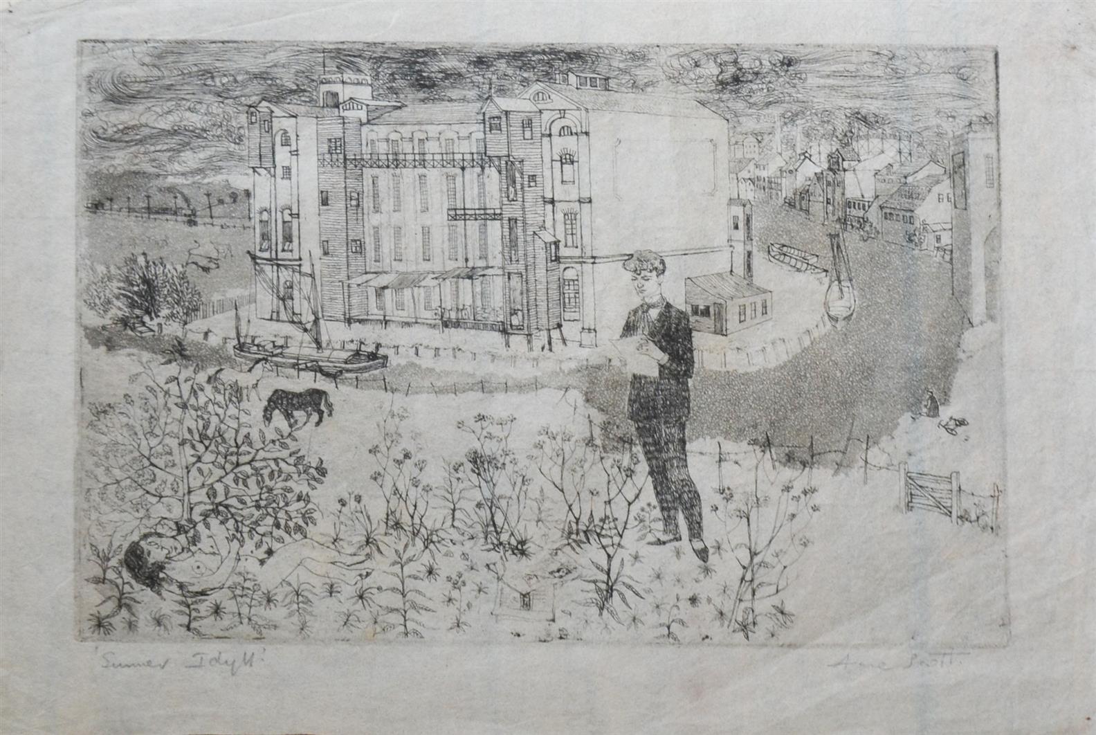 ANNE SCOTT, SUMMER IDYLL, ETCHING ON RICE PAPER, SHEET SIZE: 19 x 28CM, UNFRAMED, LIGHT DISCOLOURATION AND CREASING TO SHEET, LEONARD JOEL DELIVERY SIZE: SMALL