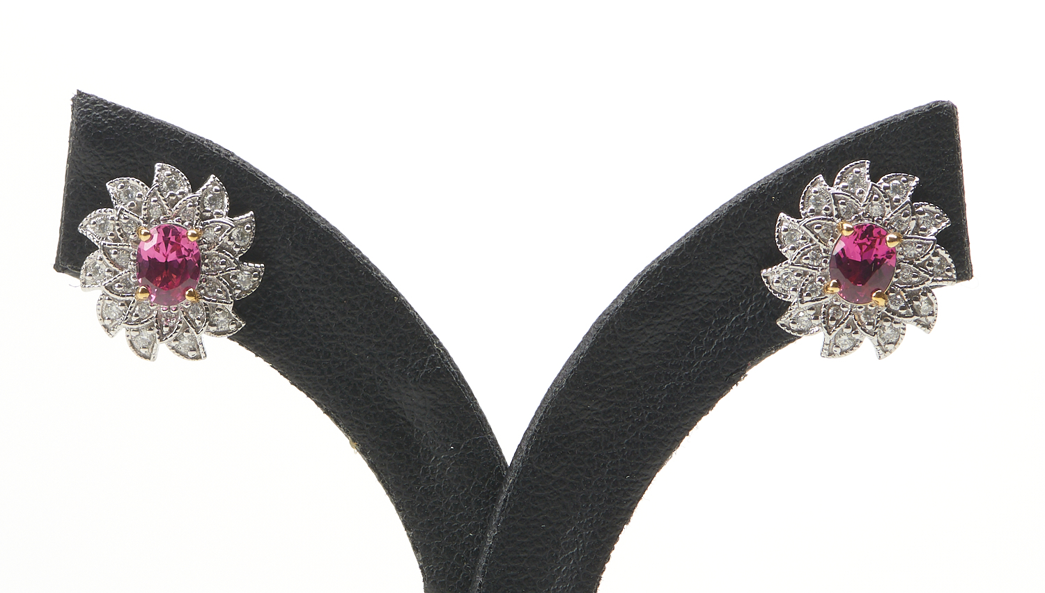 A PAIR OF PINK SPINEL AND DIAMOND EARRINGS IN 18CT WHITE GOLD, THE SPINELS TOTALLING 0.83CTS, AND DIAMONDS TOTALLING 0.24CTS, 13MMx12MM, 4.1GMS