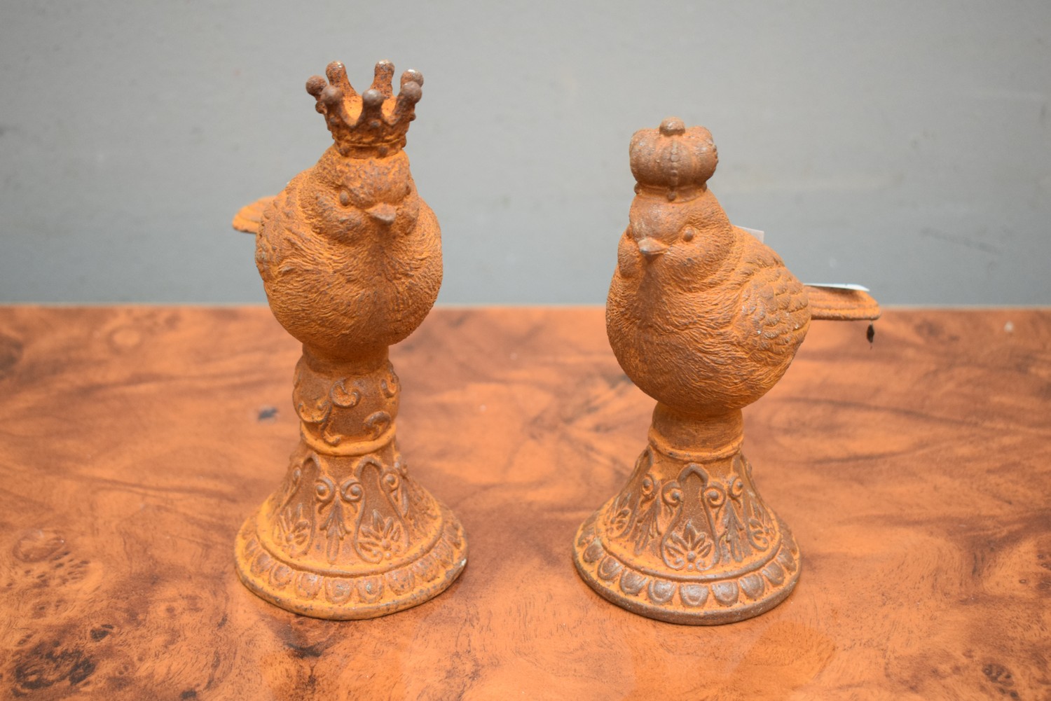A PAIR OF CAST IRON BIRD FIGURINES (17H CM) (LEONARD JOEL DELIVERY SIZE: SMALL)