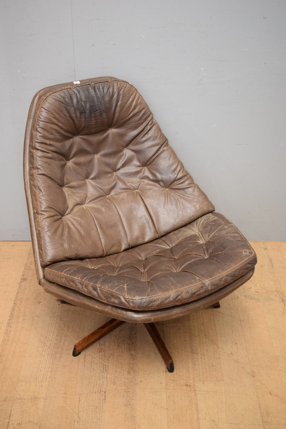 A MADSEN AND SCHUBELL SWIVEL CHAIR IN LEATHER (A/F) (89H x 82W x 94D CM) (LEONARD JOEL DELIVERY SIZE: LARGE)