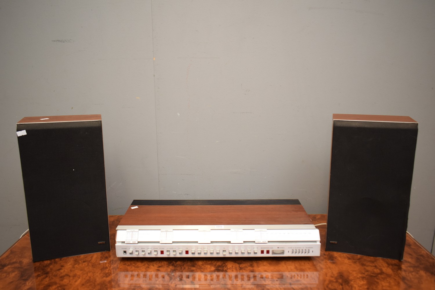 A BANG & OLUFSEN BEOMASTER 4400 TUNER WITH A PAIR OF BEOVOX 530 SPEAKERS (A/F) (UNTESTED) (TUNER 11H x 59W x 28D CM) (LEONARD JOEL DELIVERY SIZE: MEDIUM)