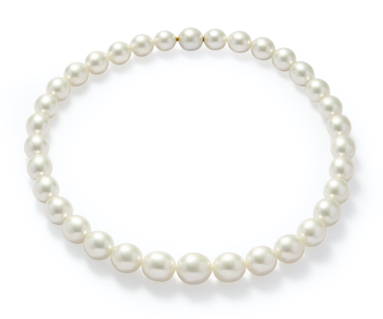 Composed of 34 cultured pearls, graduating from approximately 10.02mm-13.90mm, completed by a concealed 18ct gold spring-loaded pearl clasp, circumference approximately 435mm, signed Paspaley, maker's mark for Paspaley.