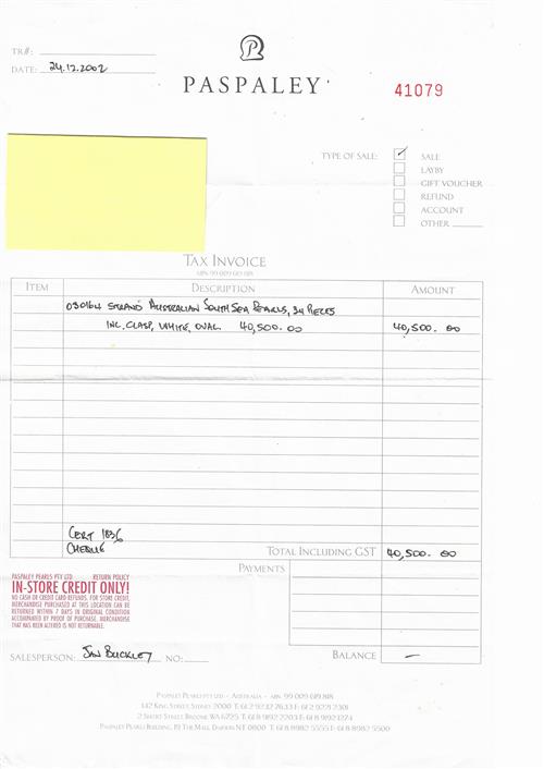 Accompanied by a Paspaley certificate, invoice and box.