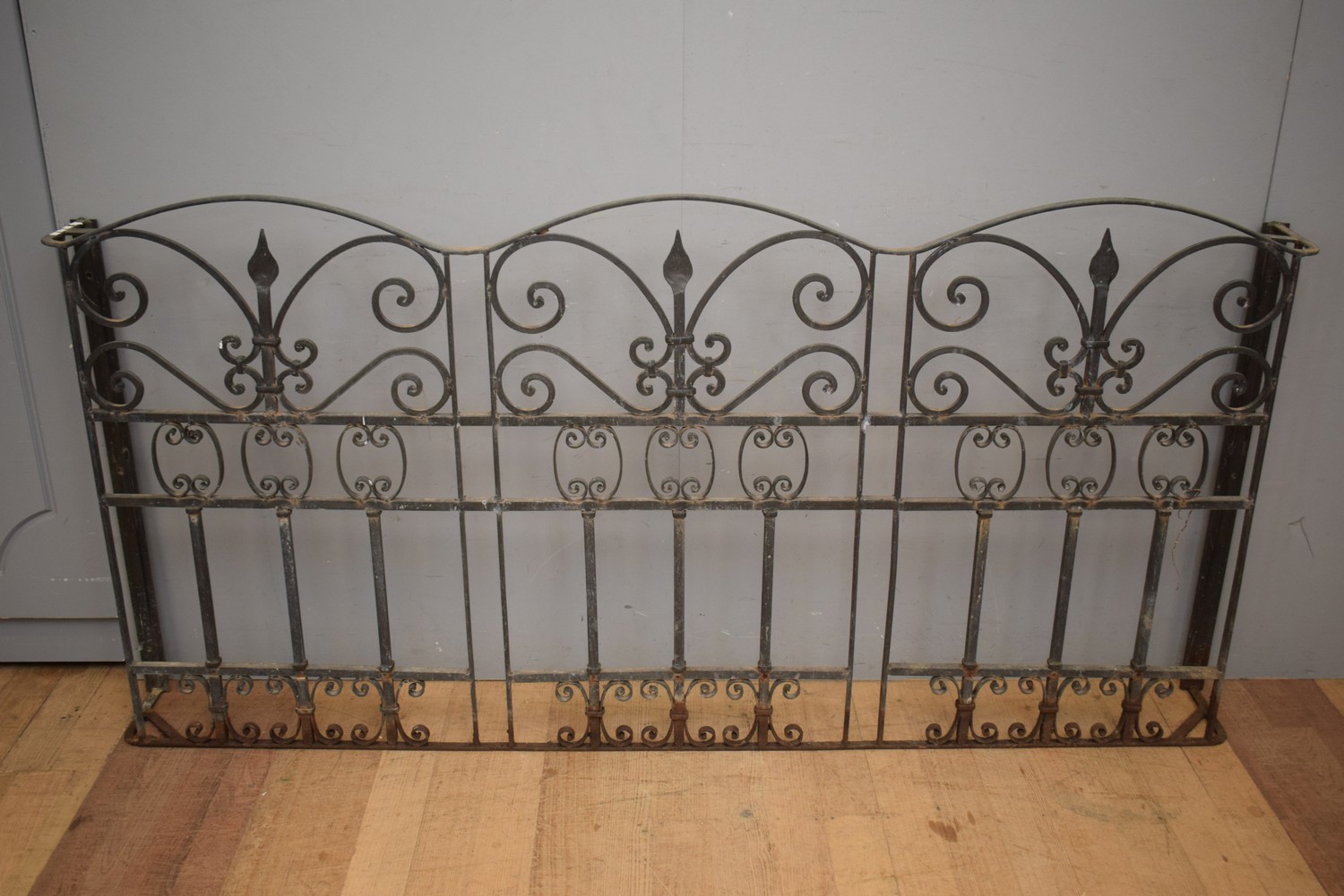 A DECORATIVE WROUGHT IRON BALUSTRADE (112H x 218W x 22D CM) (PLEASE NOTE THIS HEAVY ITEM MUST BE REMOVED BY CARRIERS AT THE CUSTOMER'S EXPENSE. LEONARD JOEL STAFF CANNOT ASSIST CARRYING THIS ITEM) (X-LARGE ITEM)