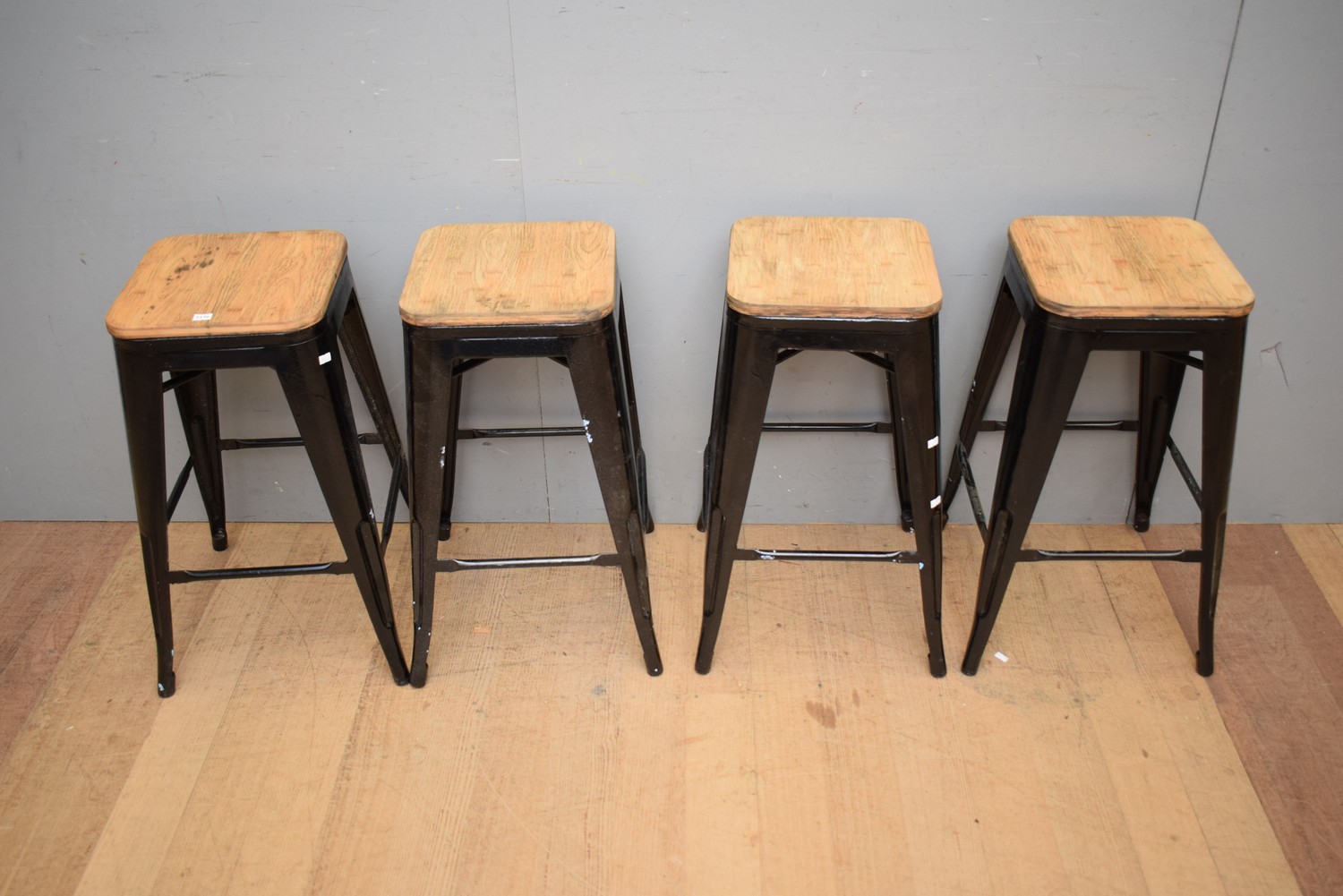 A SET OF FOUR METAL BAR STOOLS (A/F) (67H x 41W CM) (LEONARD JOEL DELIVERY SIZE: MEDIUM)