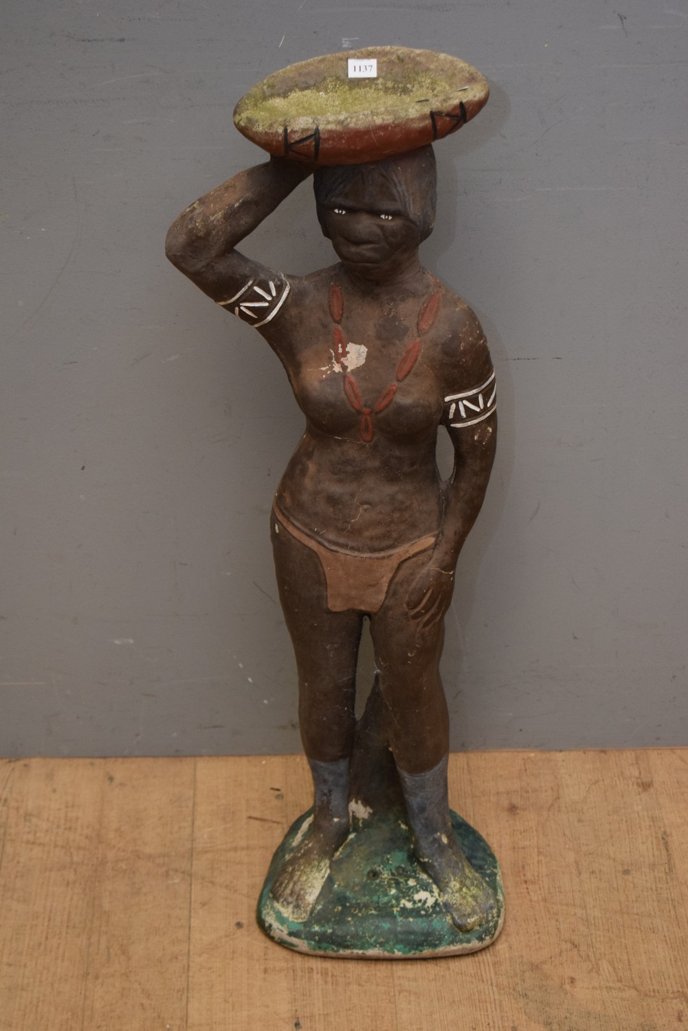 A MID-CENTURY CONCRETE INDIGENOUS FIGURE (A/F) (92H CM) (PLEASE NOTE THIS HEAVY ITEM MUST BE REMOVED BY CARRIERS AT THE CUSTOMER'S EXPENSE. LEONARD JOEL STAFF CANNOT ASSIST CARRYING THIS ITEM) (X-LARGE ITEM)