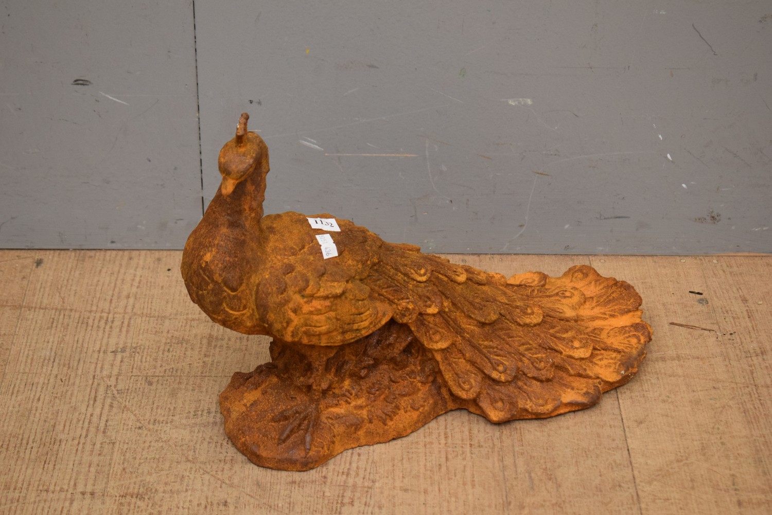 A CAST IRON PEACOCK (30H x 45W CM) (LEONARD JOEL DELIVERY SIZE: MEDIUM)