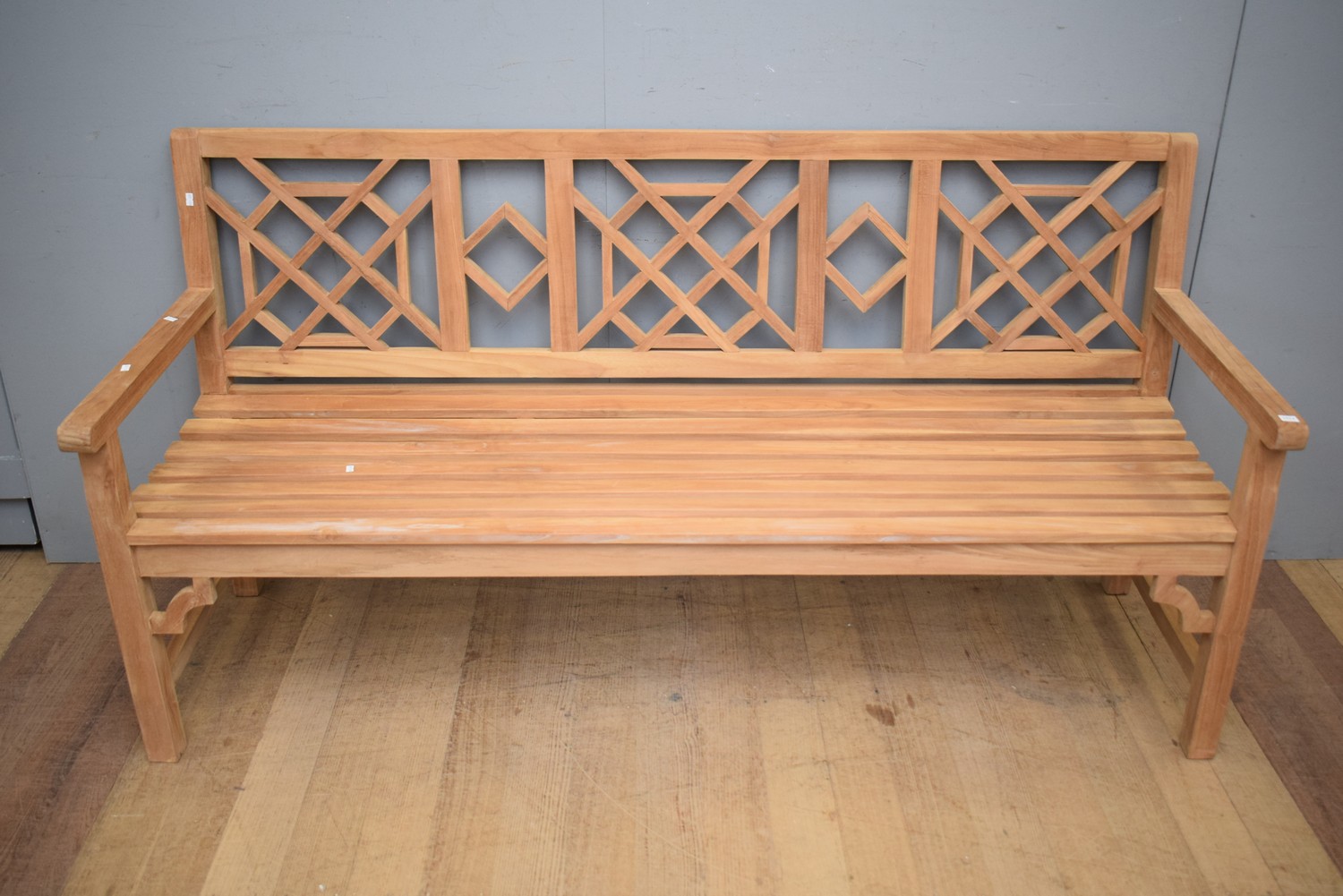 A CHIPPENDALE STYLE TEAK BENCH (92H x 180W x 66D CM) (LEONARD JOEL DELIVERY SIZE: LARGE)