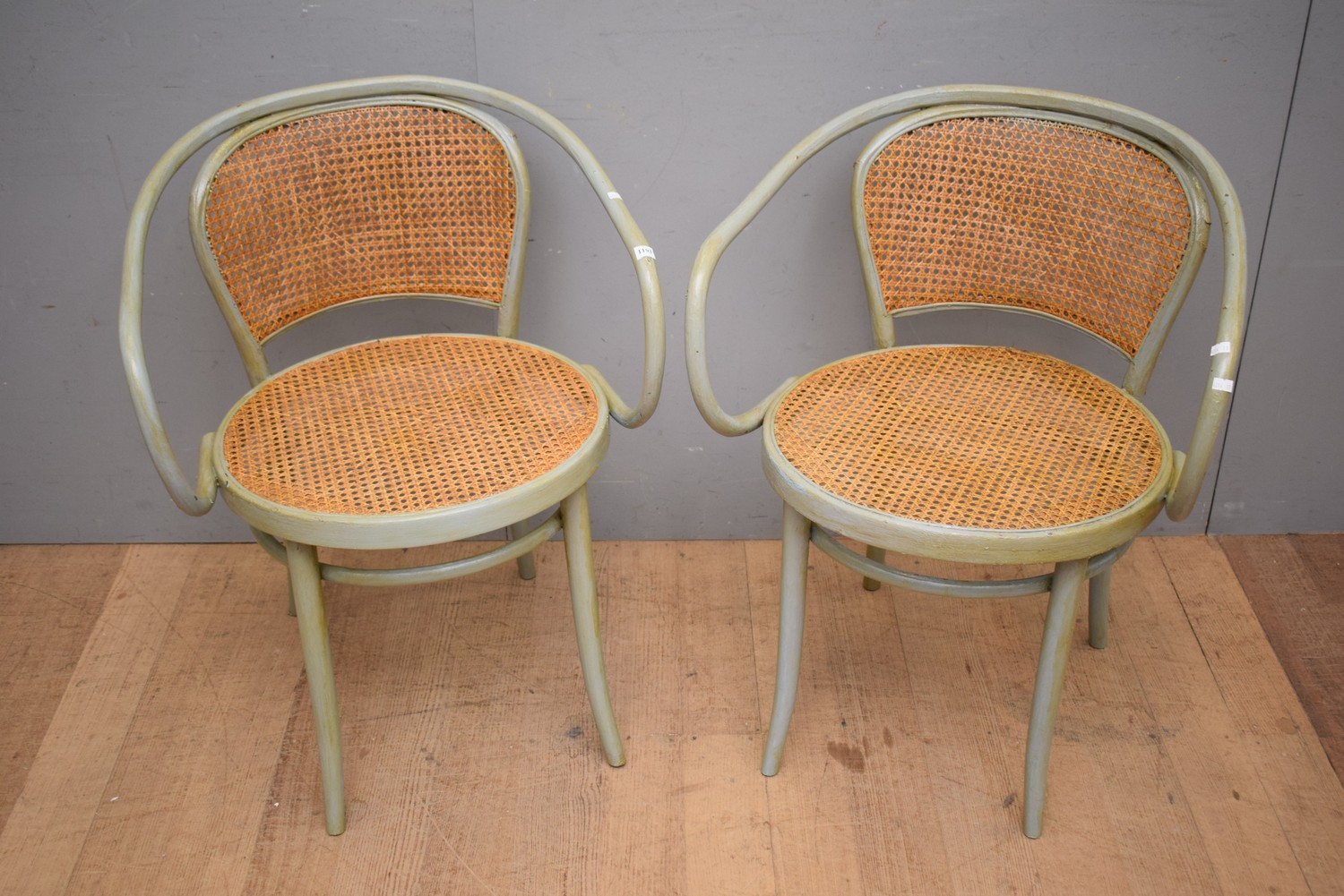 A PAIR OF BENTWOOD RATTAN CHAIRS (78H x 61W x 58D CM) (LEONARD JOEL DELIVERY SIZE: MEDIUM)