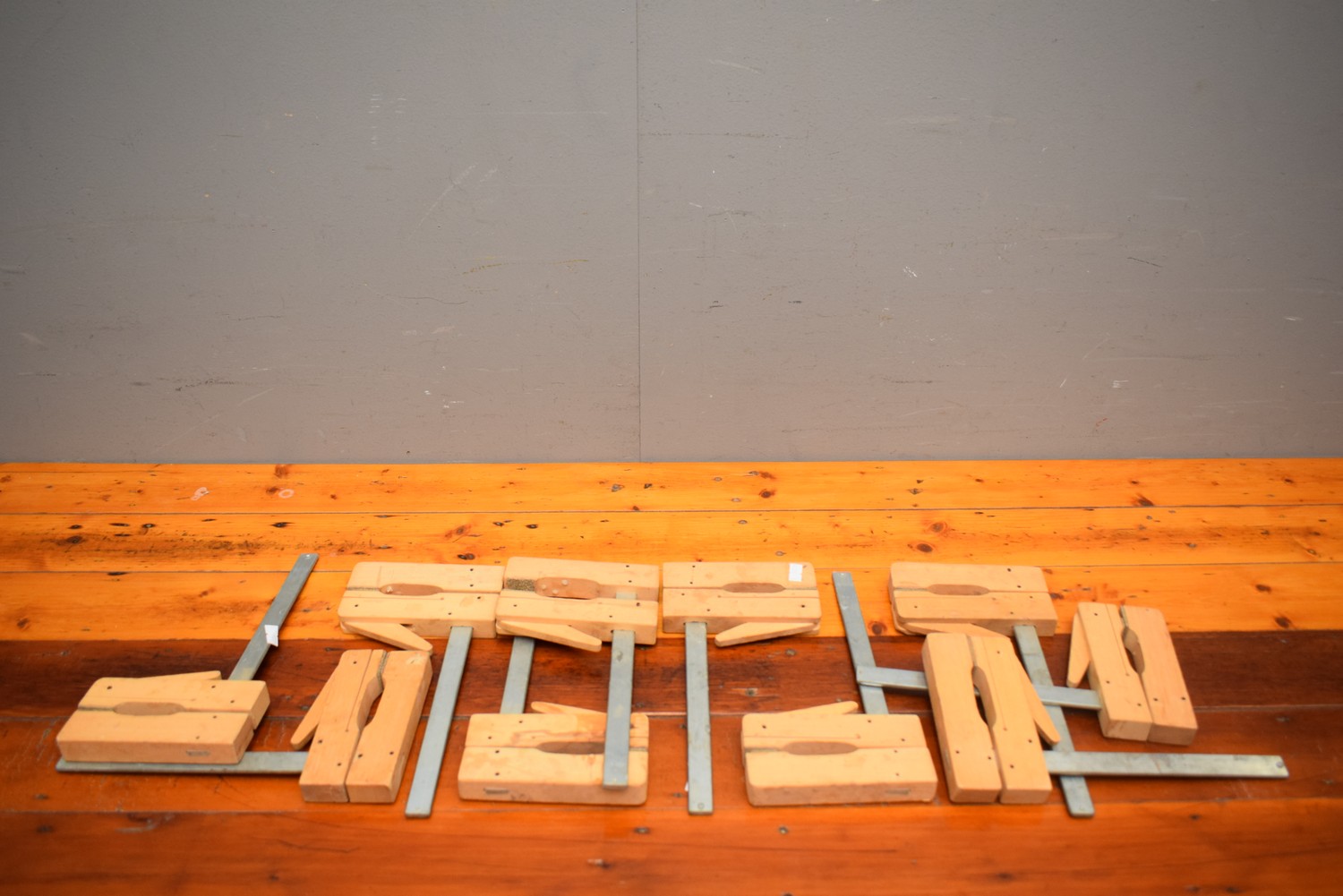 A SET OF TEN WOODEN BOAT BUILDER'S CLAMPS (LEONARD JOEL DELIVERY SIZE: SMALL)
