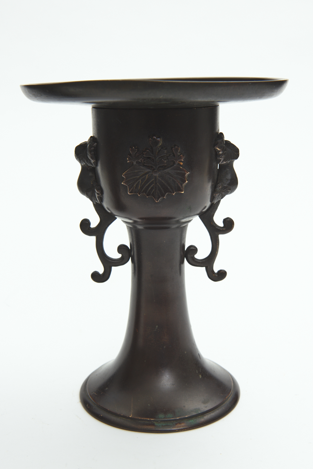 AN ORIENTAL BRONZE TWO HANDLED HIBACHI VASE, LEONARD JOEL DELIVERY SIZE: SMALL