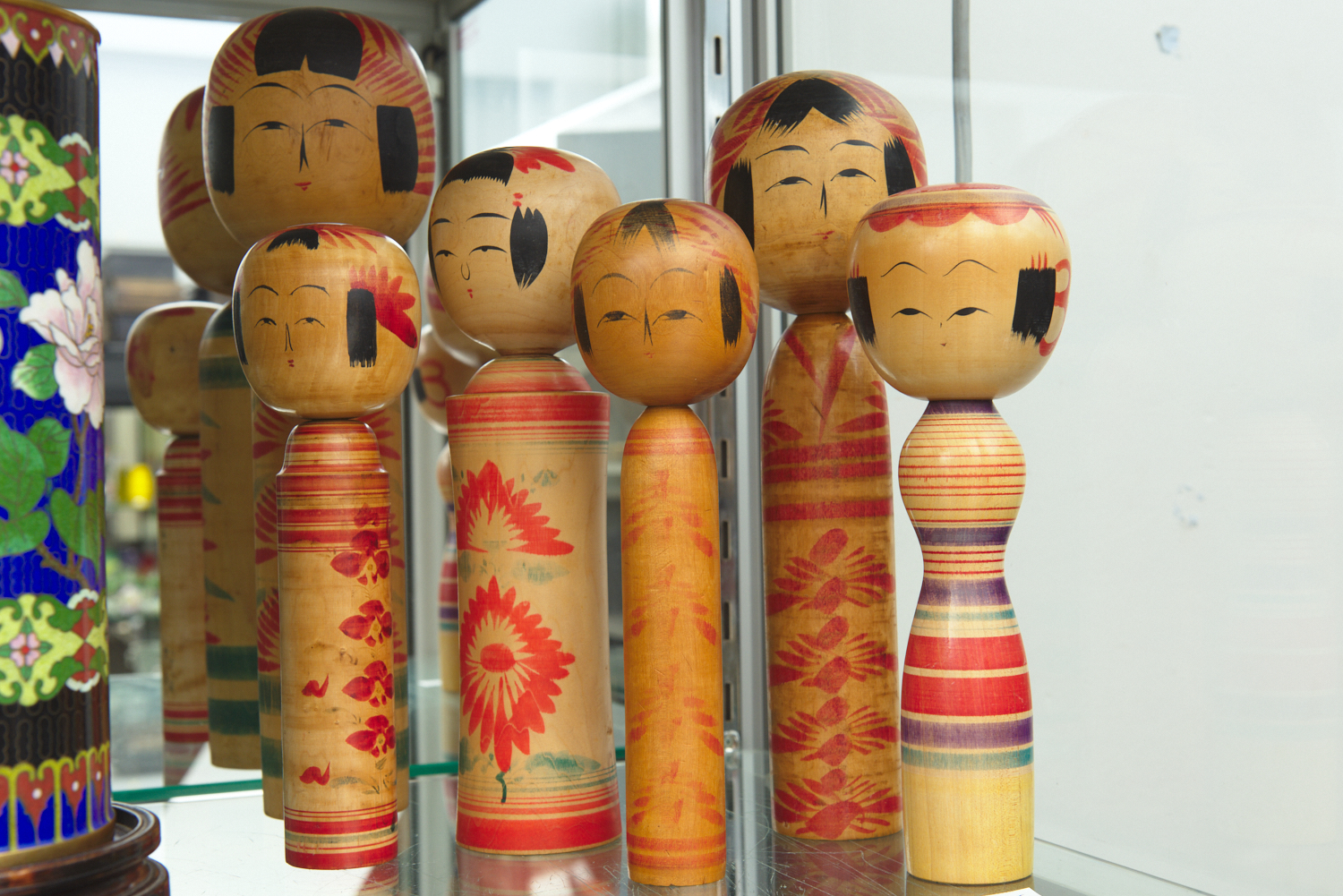 A COLLECTION OF SIX VINTAGE JAPANESE HAND PAINTED KOKESHI DOLLS, THE TALLEST 34 CM HIGH, LEONARD JOEL DELIVERY SIZE: SMALL