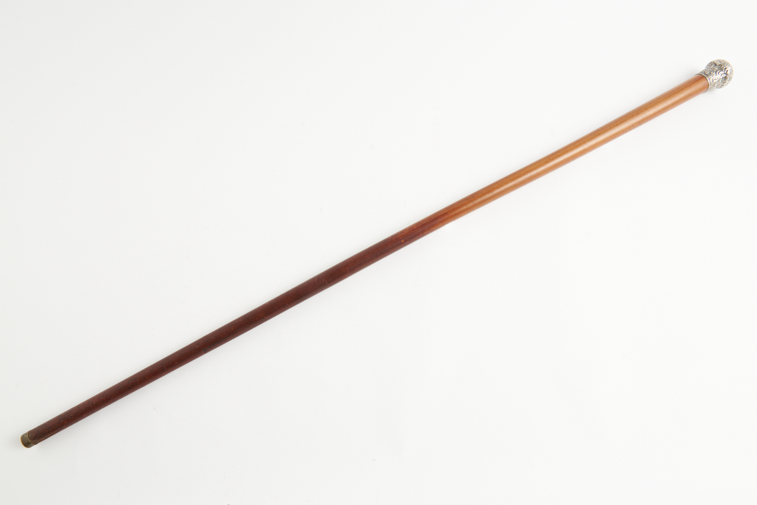 AN ENGLISH HALLMARKED STERLING SILVER TOPPED MALACCA CANE WALKING STICK, L. 86CM, LEONARD JOEL LOCAL DELIVERY SIZE: SMALL