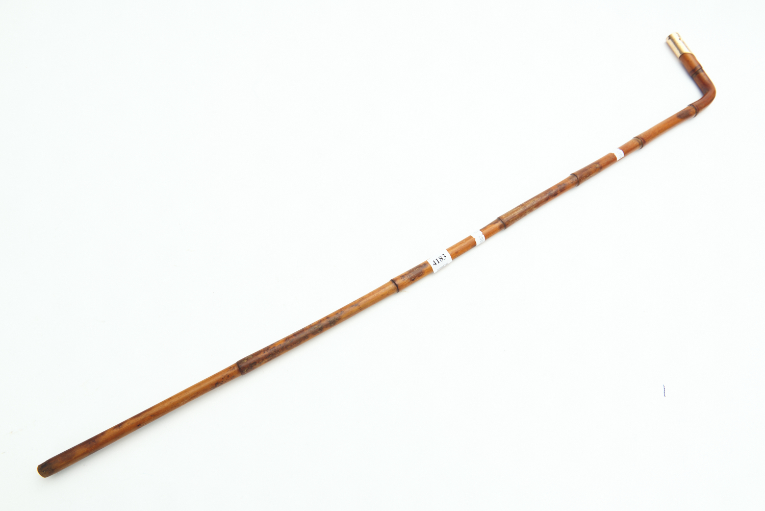 AN ENGLISH 9CT SOLD GOLD CAPPED CANE WALKING STICK, L. 88CM, LEONARD JOEL LOCAL DELIVERY SIZE: SMALL