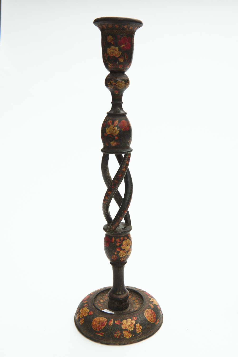 A FINE 19TH CENTURY HAND CARVED AND PAINTED ENGLISH WOODEN CANDLESTICK, 51 CM HIGH, LEONARD JOEL DELIVERY SIZE: SMALL