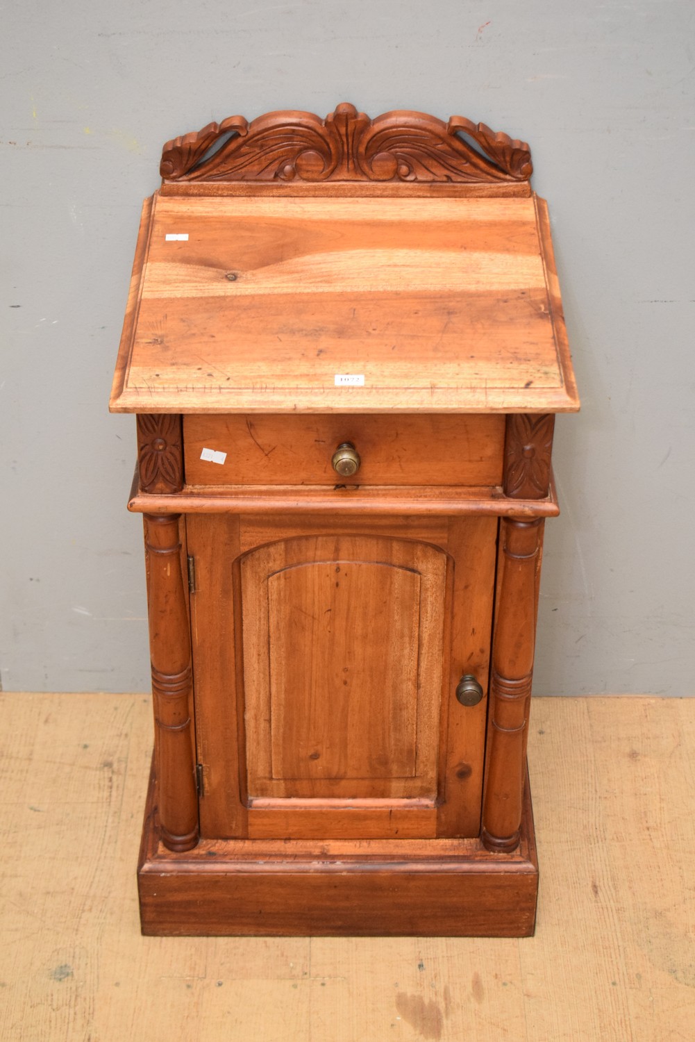 A SOLID MAHOGANY BEDSIDE CABINET WITH CARVED REAR DETAILS (75H x 41W x 40D CM) (LEONARD JOEL DELIVERY SIZE: MEDIUM)