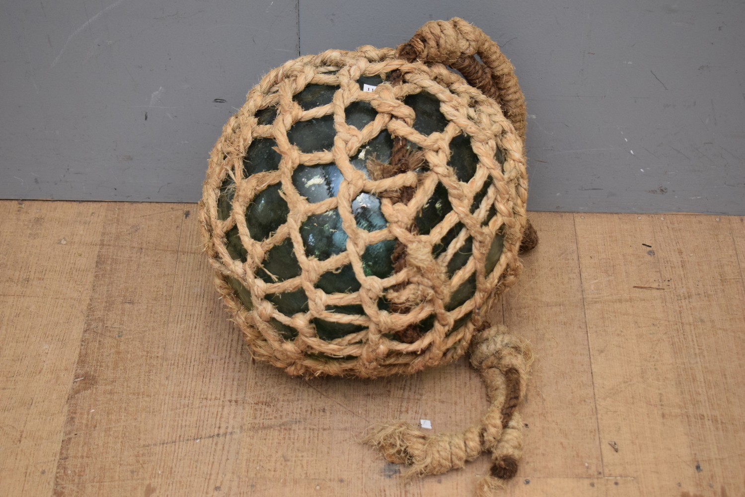 A LARGE 1920S GLASS AND NATURAL FIBRE COVERED SHIPS/FISHING BUOY (APPROX 44D CM) (LEONARD JOEL DELIVERY SIZE: SMALL)