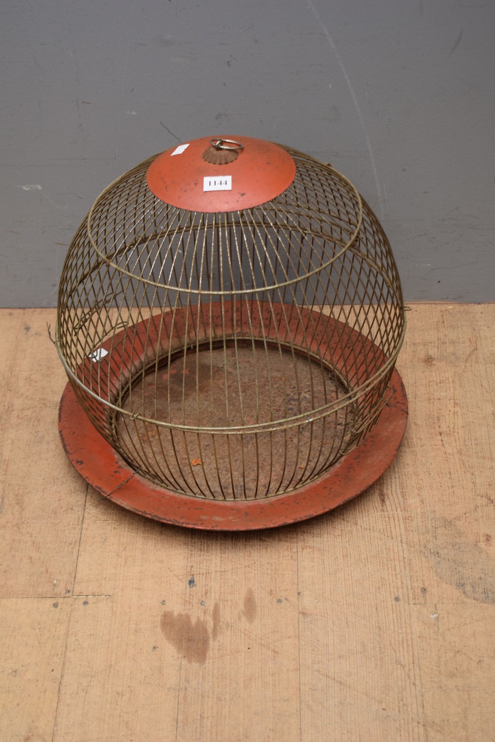 A VINTAGE 1940S OVAL WIRE BIRD CAGE (38H x 35D CM) (LEONARD JOEL DELIVERY SIZE: SMALL)