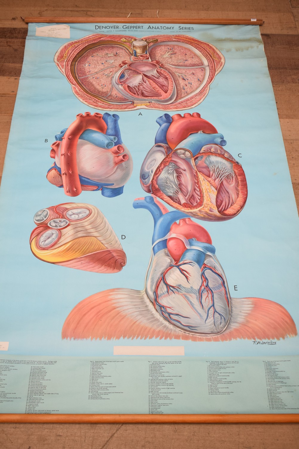 A LARGE 20TH CENTURY ENGLISH DENOYER GEPPERT ANATOMY SERIES WOODEN FRAMED LINEN BACKED POSTER ON THE HEART BY P M LARIVIERE (A/F) (178H x 117W CM) (LEONARD JOEL DELIVERY SIZE: SMALL)