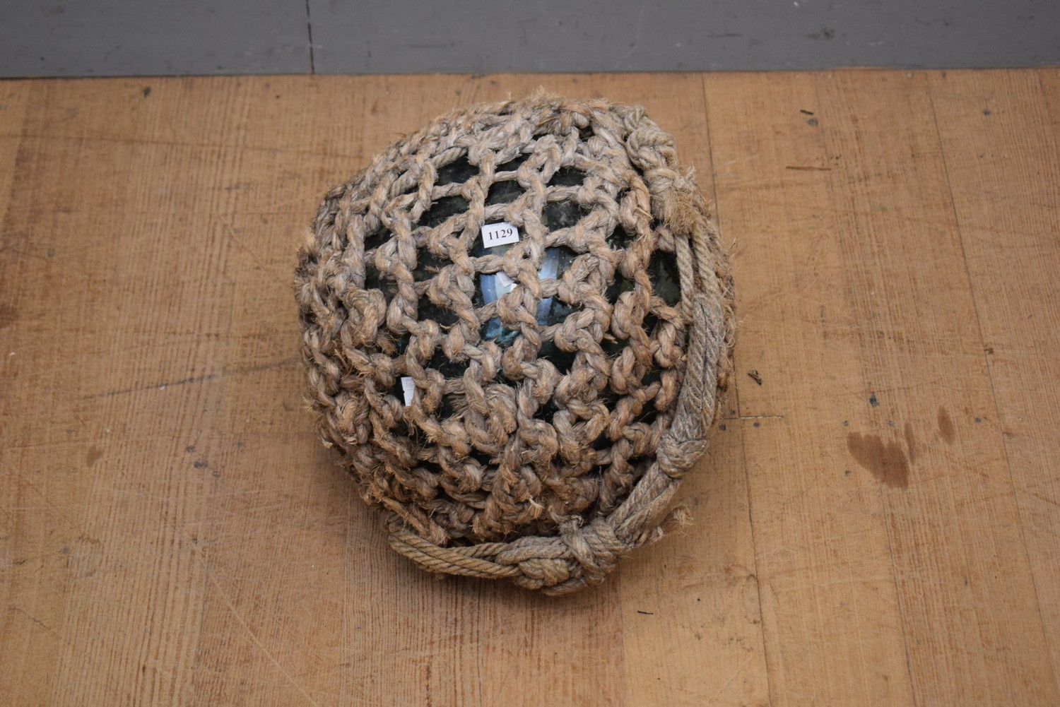 A LARGE 1920S GLASS AND NATURAL FIBRE COVERED SHIPS/FISHING BUOY (APPROX 35D CM) (LEONARD JOEL DELIVERY SIZE: SMALL)
