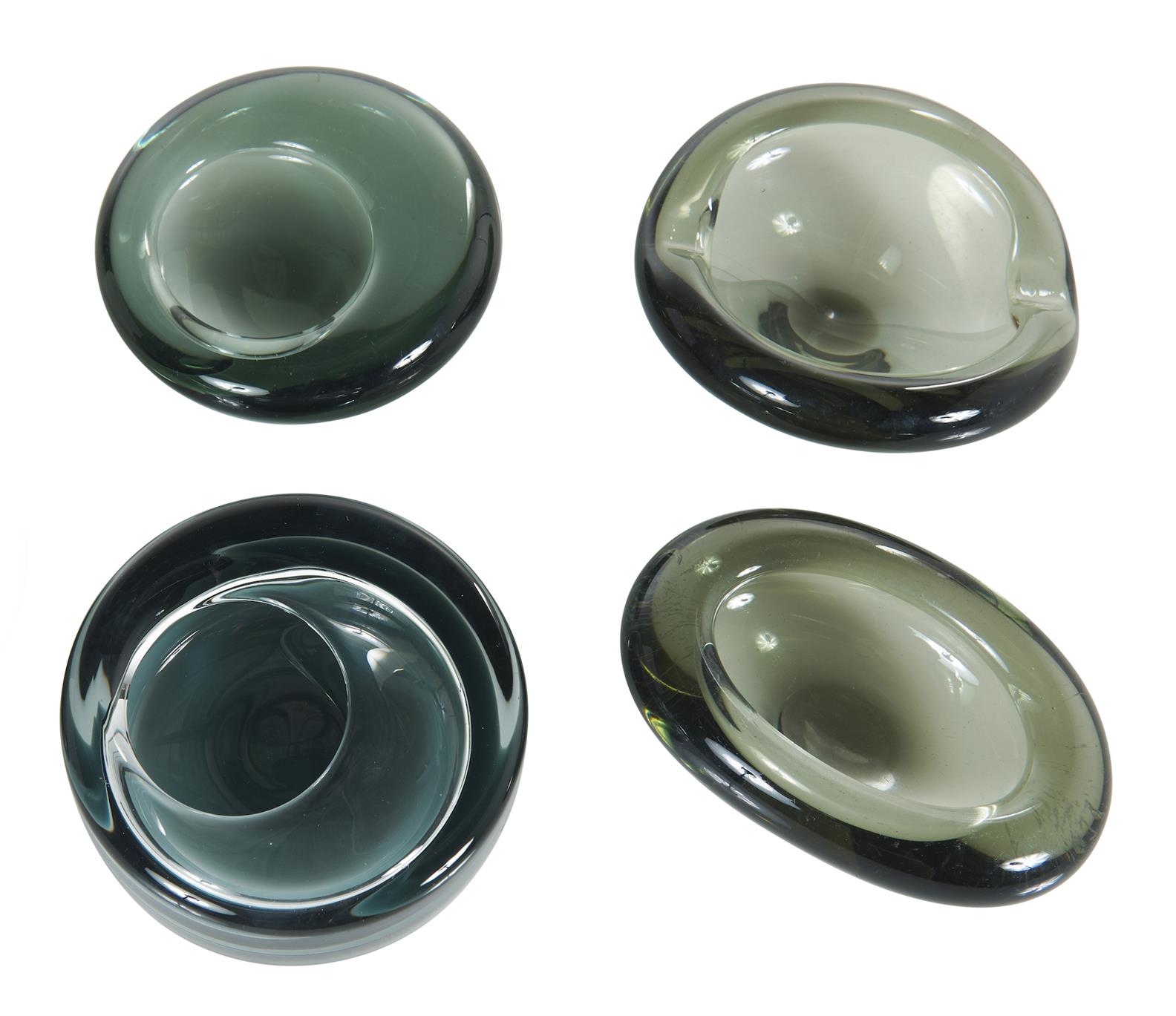 Smokey glass, varying shapes, signed (illegibly) with numbers
