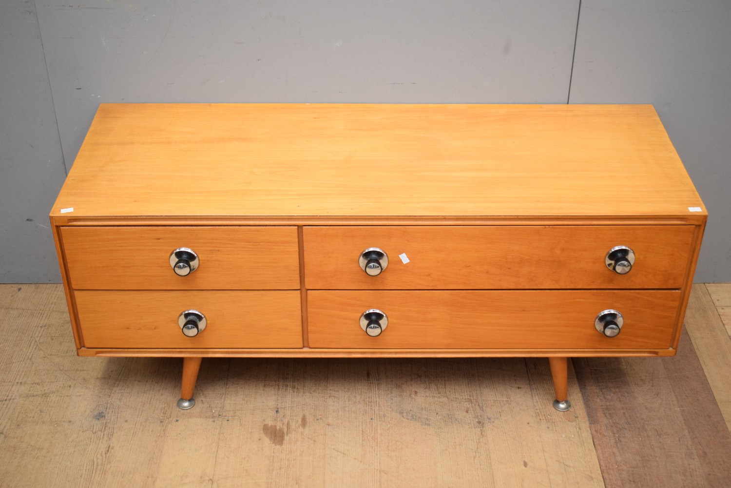 A MID-CENTURY BLONDEWOOD FOUR DRAWER SIDEBOARD (48H 118W 44D CM) (LEONARD JOEL DELIVERY: LARGE)