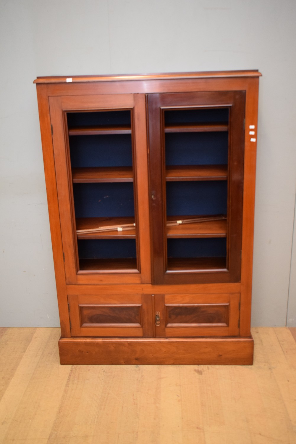 A C 1900 ENGLISH MADE MAHOGANY BOOKCASE WITH KEYS (A/F MISSING GLASS PANELS) (166H x 113W x 42D CM) (PLEASE NOTE THIS HEAVY ITEM MUST BE REMOVED BY CARRIERS AT THE CUSTOMER'S EXPENSE. LEONARD JOEL STAFF CANNOT ASSIST CARRYING THIS ITEM) (X-LARGE ITEM)