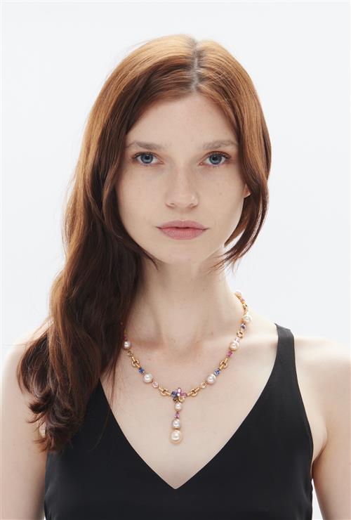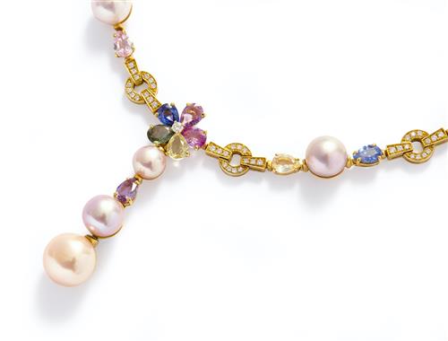 18CT GOLD, COLOURED SAPPHIRE, PEARL AND DIAMOND 'FLORA' PENDANT NECKLACE, BULGARI, CIRCA 2005