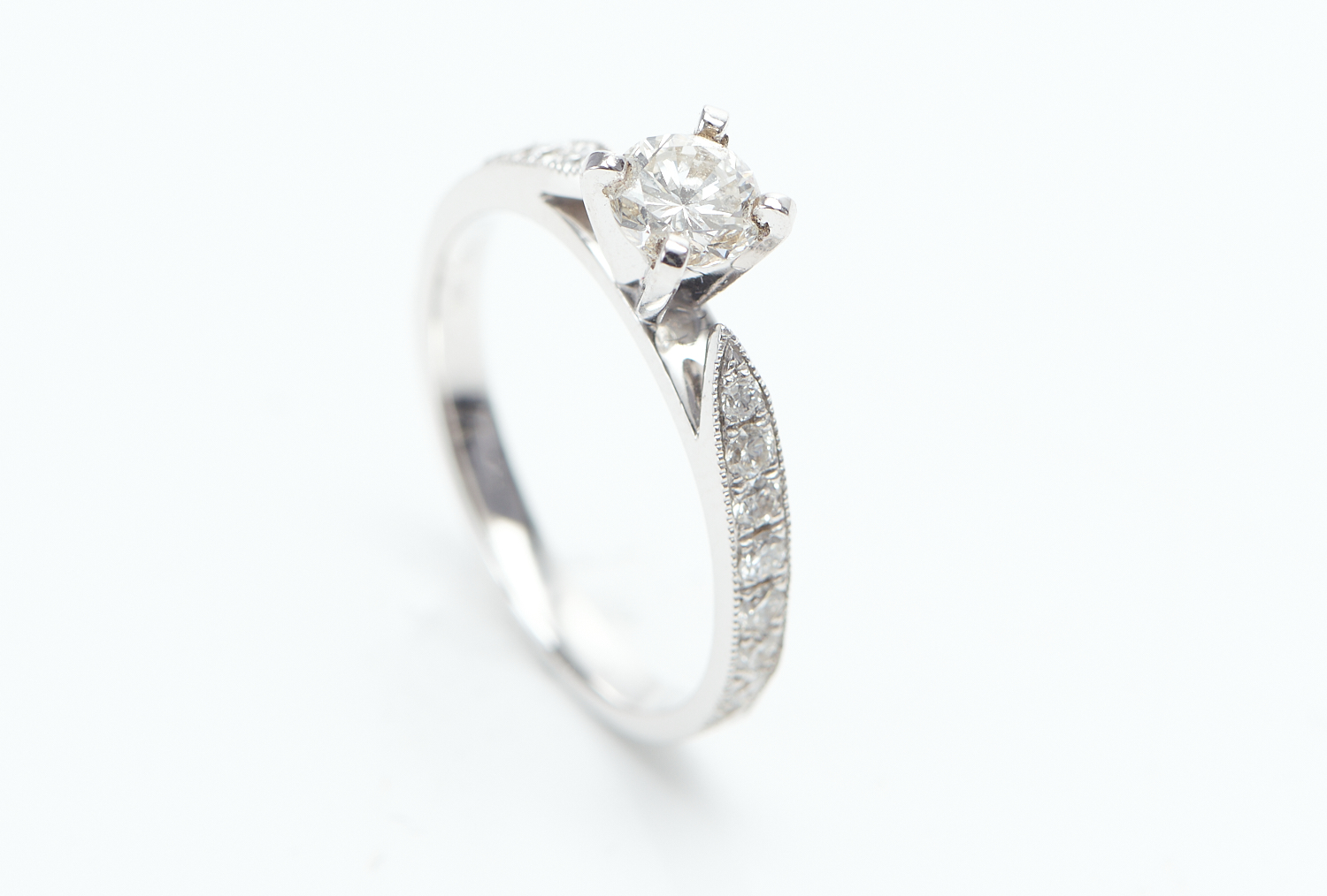 A PAIR DIAMOND STUD EARRINGS IN 18CT WHITE GOLD, THE TOTAL DIAMOND WEIGHT ESTIMATED 2.40CTS, TO POST AND BUTTERFLY FITTINGS