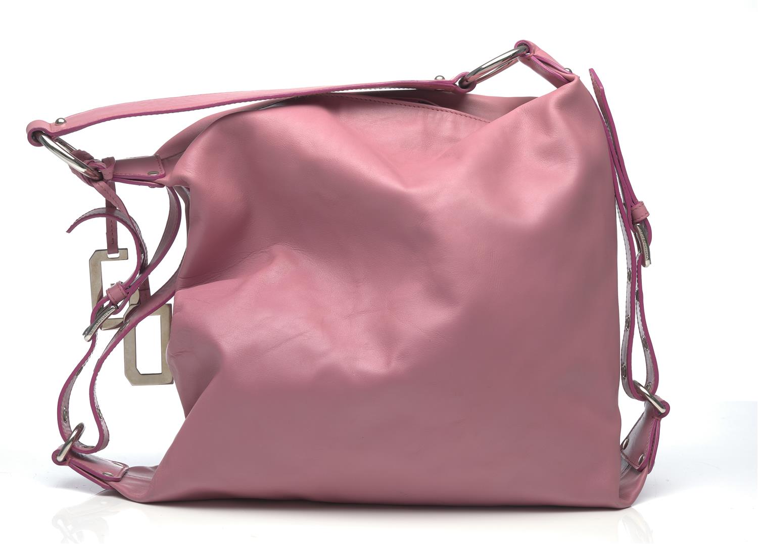 Styled in dusty pink leather with silver metal hardware and DG charms, 30 x 24 x 10cm