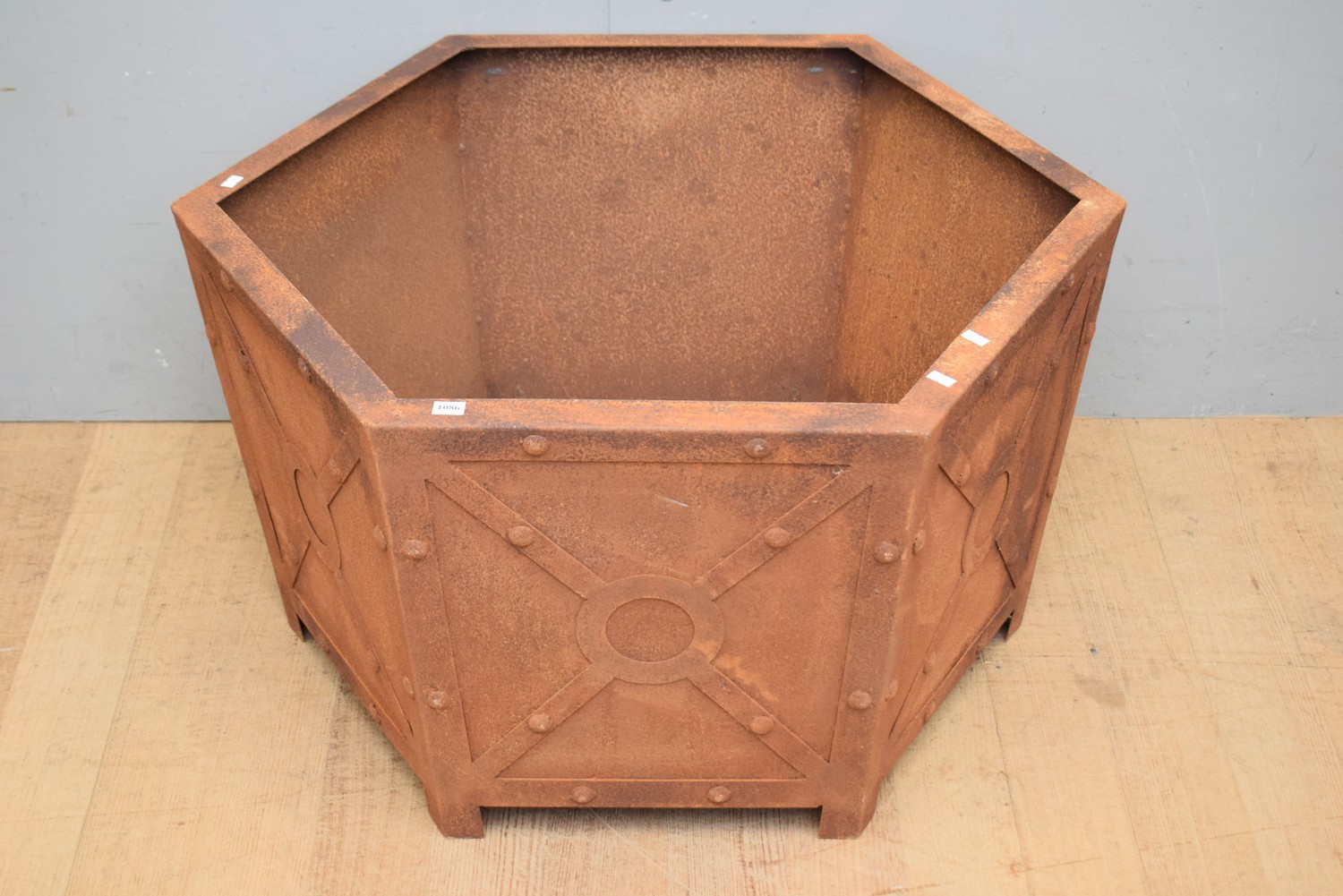 A LARGE METAL PLANTER (48H x 76D CM) (LEONARD JOEL DELIVERY SIZE: LARGE)