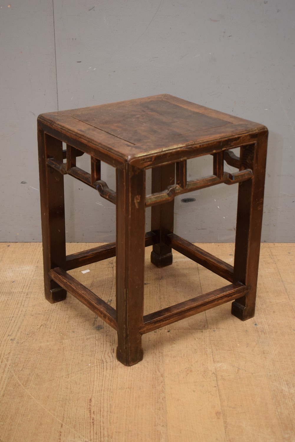 A SMALL CHINESE PROVINICAL STOOL (47H x 37W x 37D CM) (LEONARD JOEL DELIVERY SIZE: SMALL)
