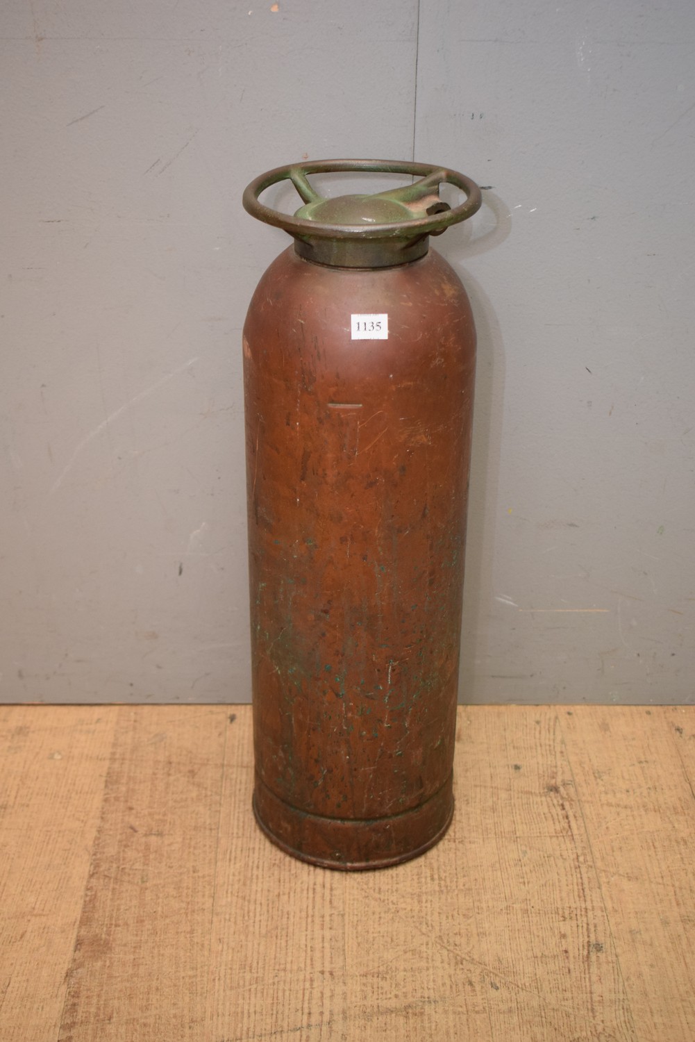 A VINTAGE FIRE EXTINGUISHER (A/F) (57H x 17D CM) (LEONARD JOEL DELIVERY SIZE: SMALL)