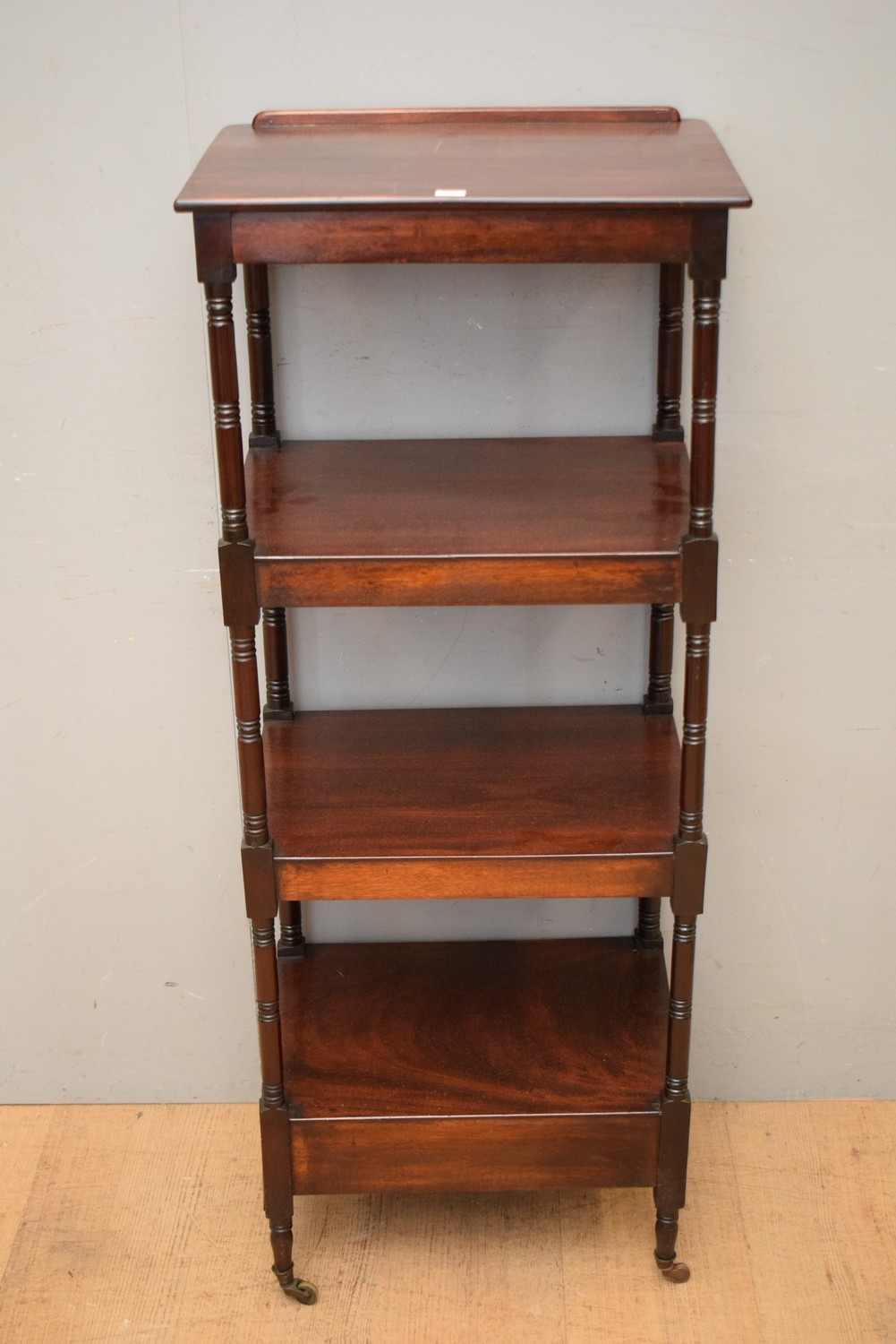AN ENGLISH REGENCY PERIOD MAHOGANY WHATNOT