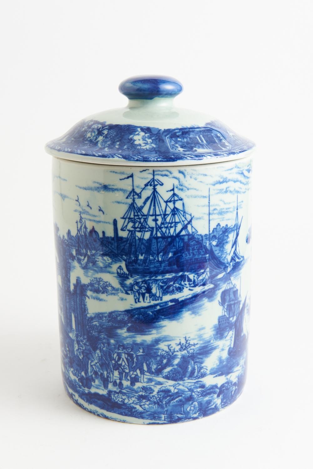 A VICTORIA WARE IRONSTONE BLUE AND WHITE LIDDED JAR, 32 CM HIGH, LEONARD JOEL LOCAL DELIVERY SIZE: SMALL