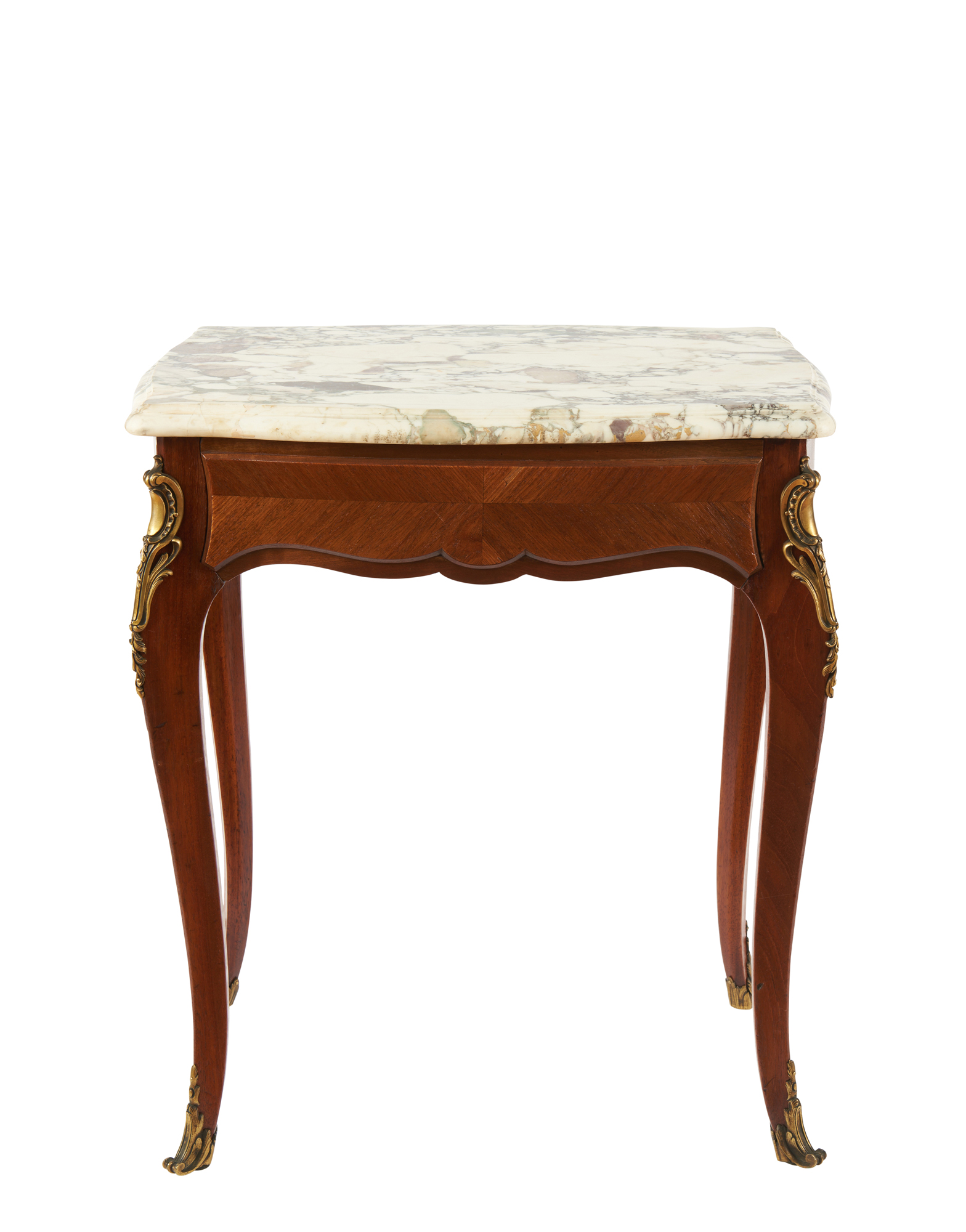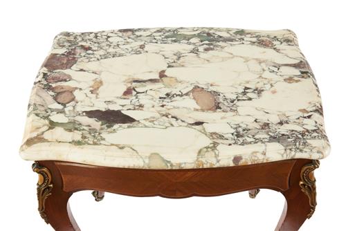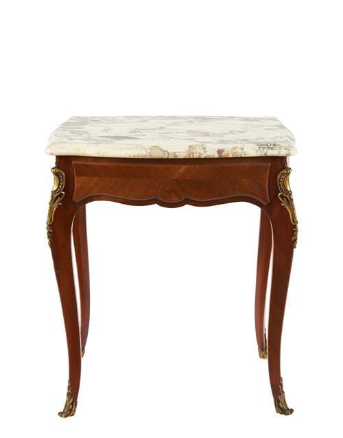 A LOUIS XV STYLE MARBLE TOP SINGLE DRAWER SIDE TABLE