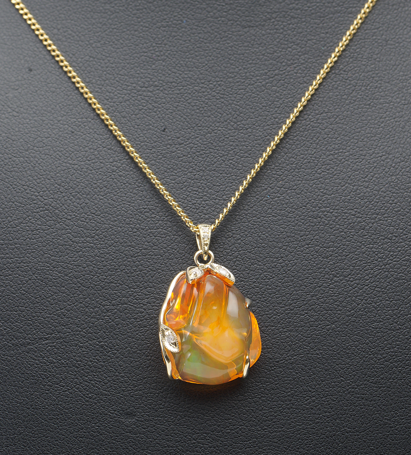 The opal weighing 11.41cts and diamonds totalling 0.09ct