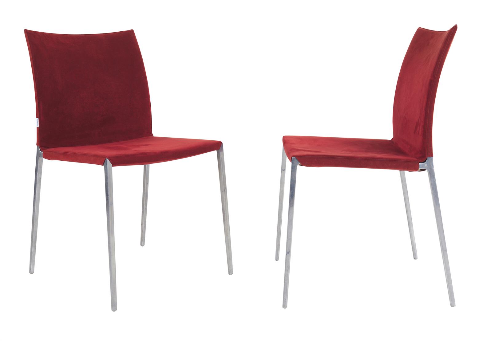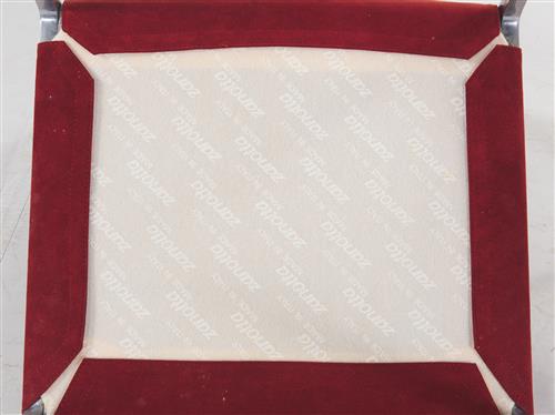 Aluminum alloy frame, deep red suede fabric. Removable covers.