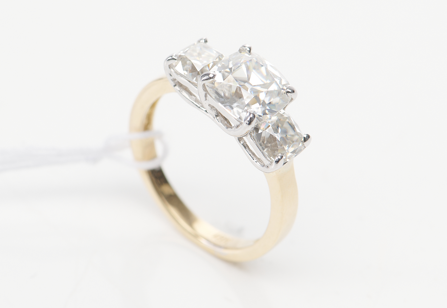 A FANCY COLOURED DIAMOND RING The fancy green round brilliant cut diamond weighing 5.01cts, in a six claw setting, in two tone 18ct...