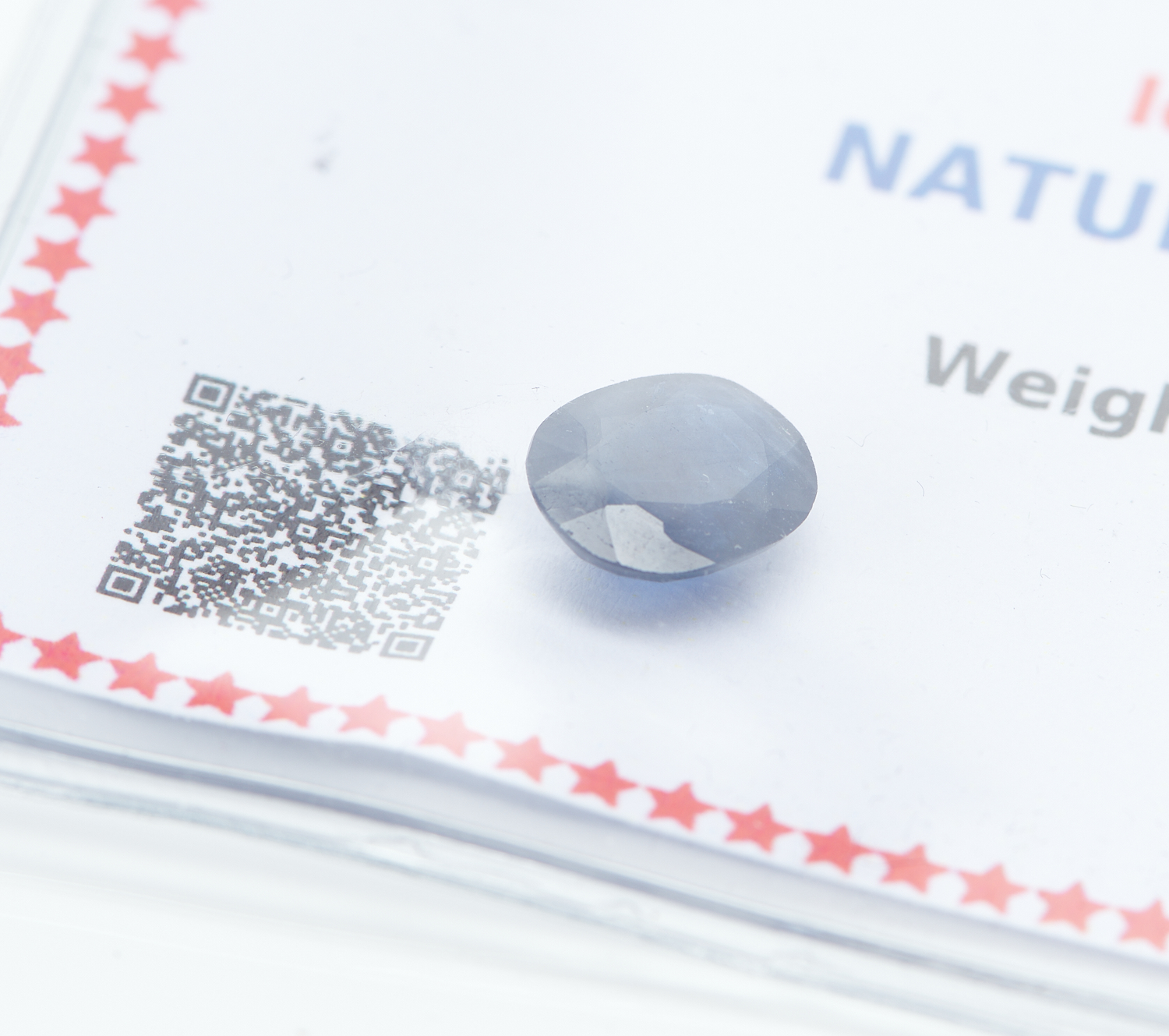 A LOOSE OVAL CUT BLUE SAPPHIRE WEIGHING 3.06CTS, WITH ACCOMPANYING AIG IDENTIFICATION LAB CARD STATING HEATED