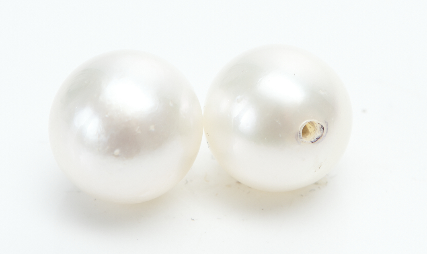 TWO LOOSE SOUTH SEA PEARLS MEASURING 12.2MM AND 12.6MM, OF SILVER-WHITE HUES, WITH ONE DRILL HOLE EACH