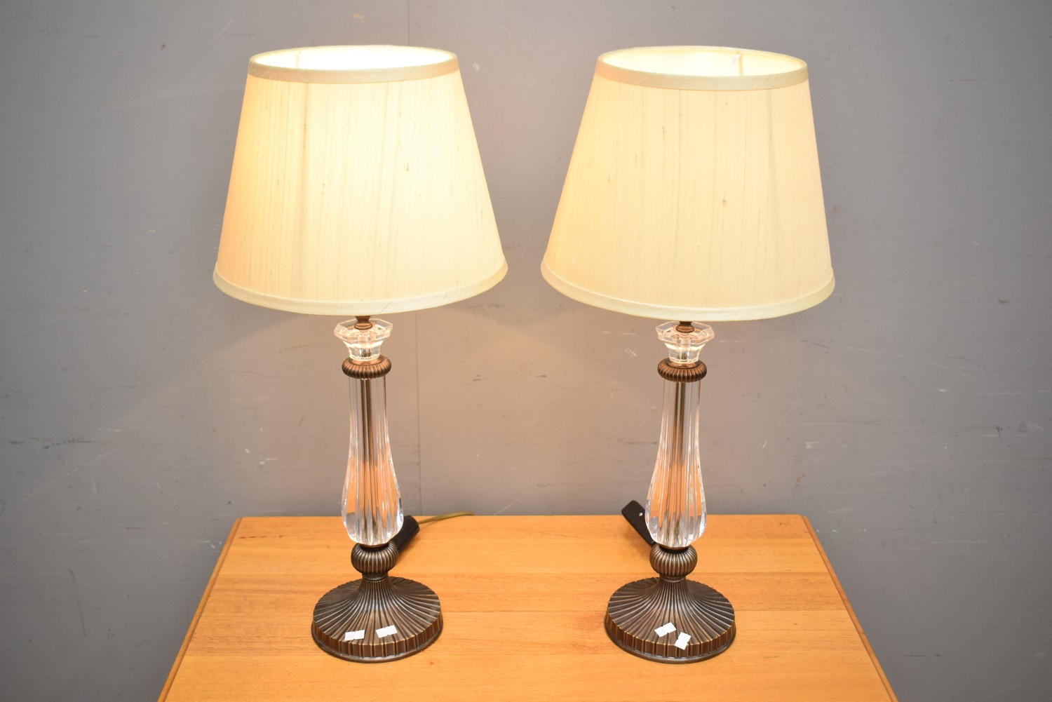 A PAIR OF CLASSICAL METAL AND PERSPEX TABLE LAMPS (66H CM) (LEONARD JOEL DELIVERY SIZE: SMALL)