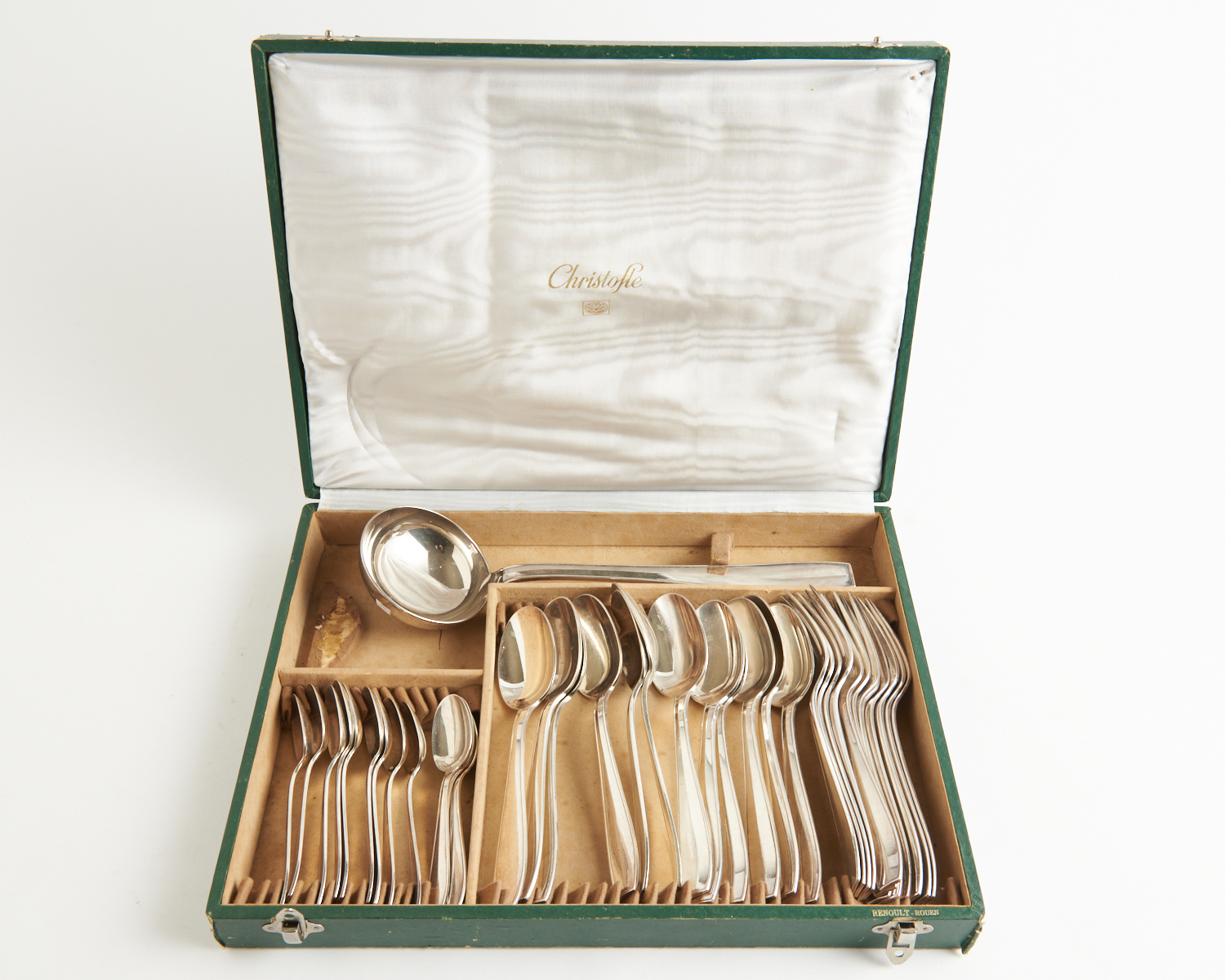 A CASED CHRISTOFLE 'ATLAS' PATTERN FLATWARE SET, 36 PIECES (NO KNIVES), LEONARD JOEL LOCAL DELIVERY SIZE: SMALL